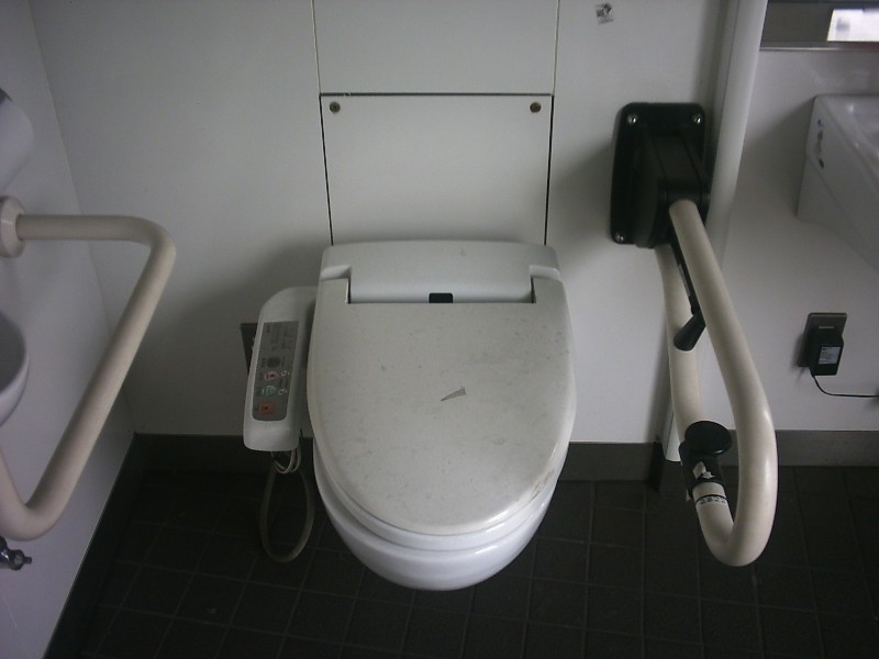 洋式便器(両手すり付き)があるバリアフリートイレ