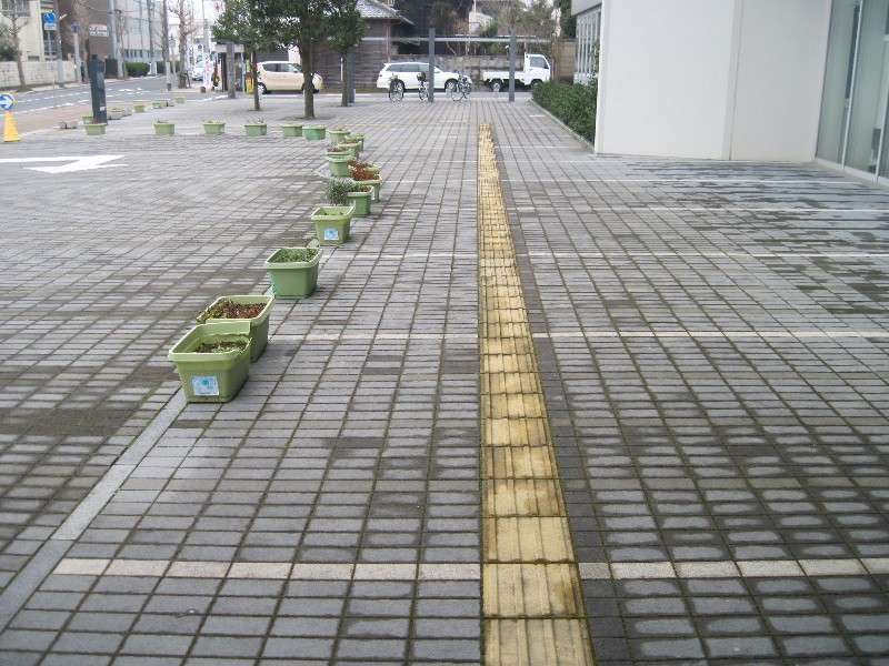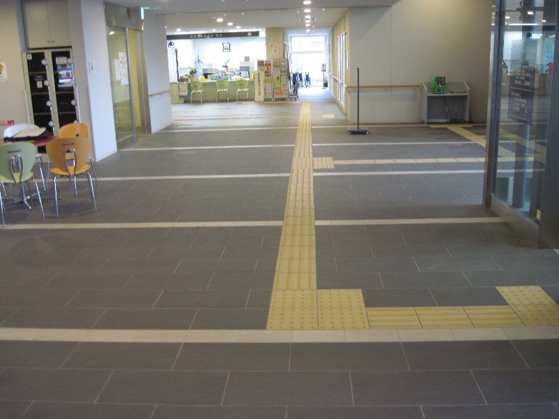 歩道から出入口までに視覚障害者誘導用ブロックがある