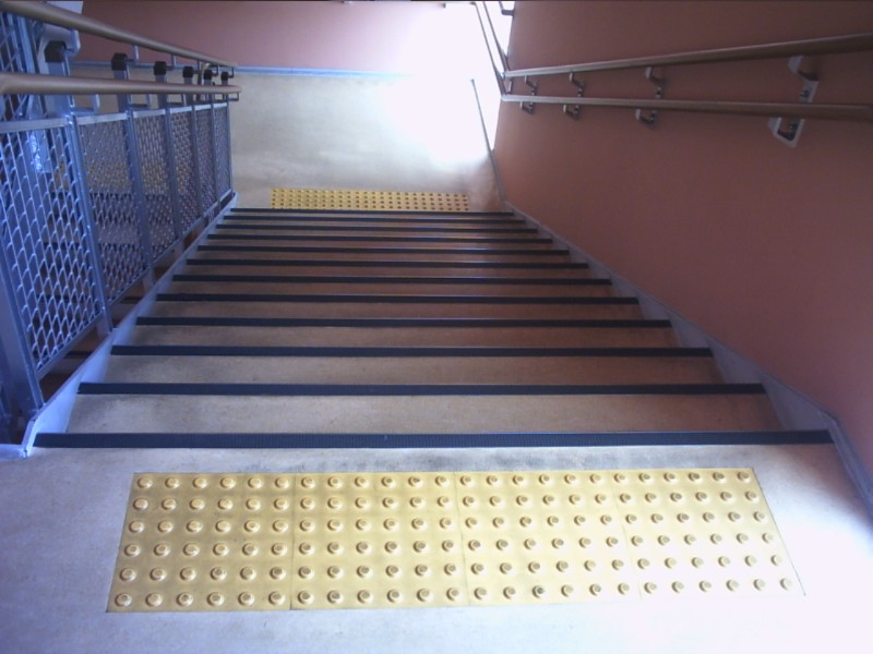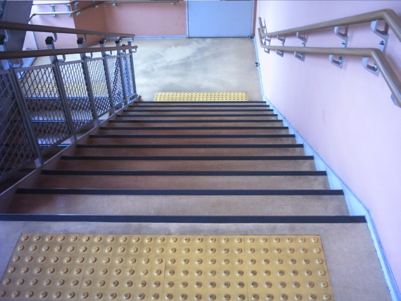 階段の手すりに点字表示がある