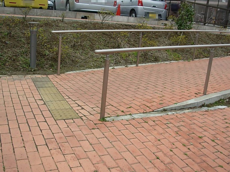 歩道から出入口までに視覚障害者誘導用ブロックがある