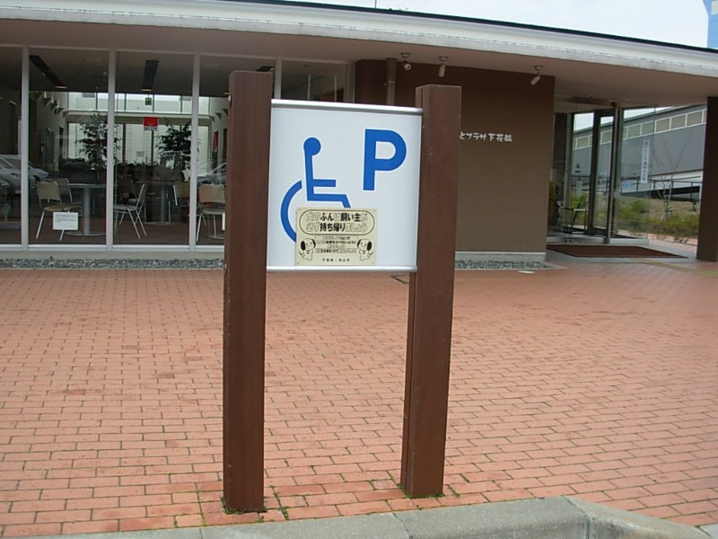 一般駐車場がある障害者等用駐車スペースがある障害者等用駐車スペースの案内表示がある