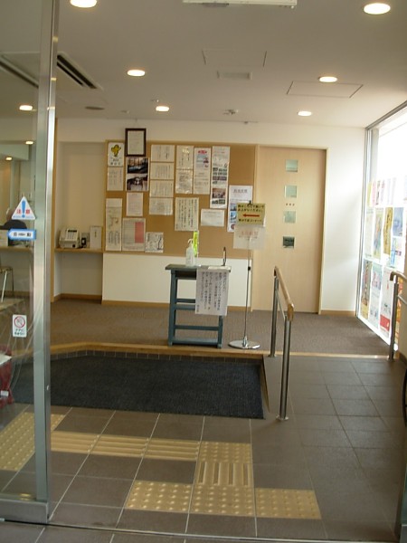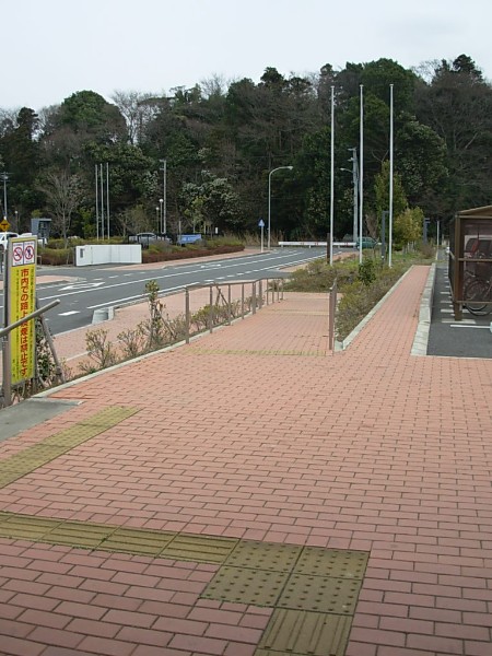 駐車場から出入口まで段差がない歩道から出入口までに視覚障害者誘導用ブロックがある