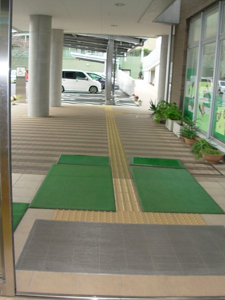 - 歩道から出入口までに視覚障害者誘導用ブロックがある