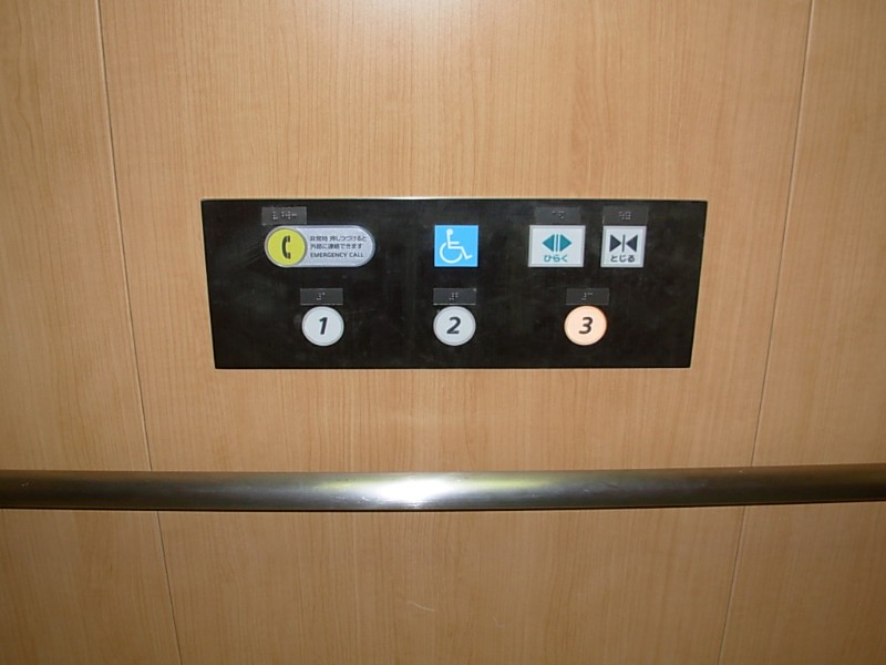 障害者対応エレベーターに点字表示ボタンがある