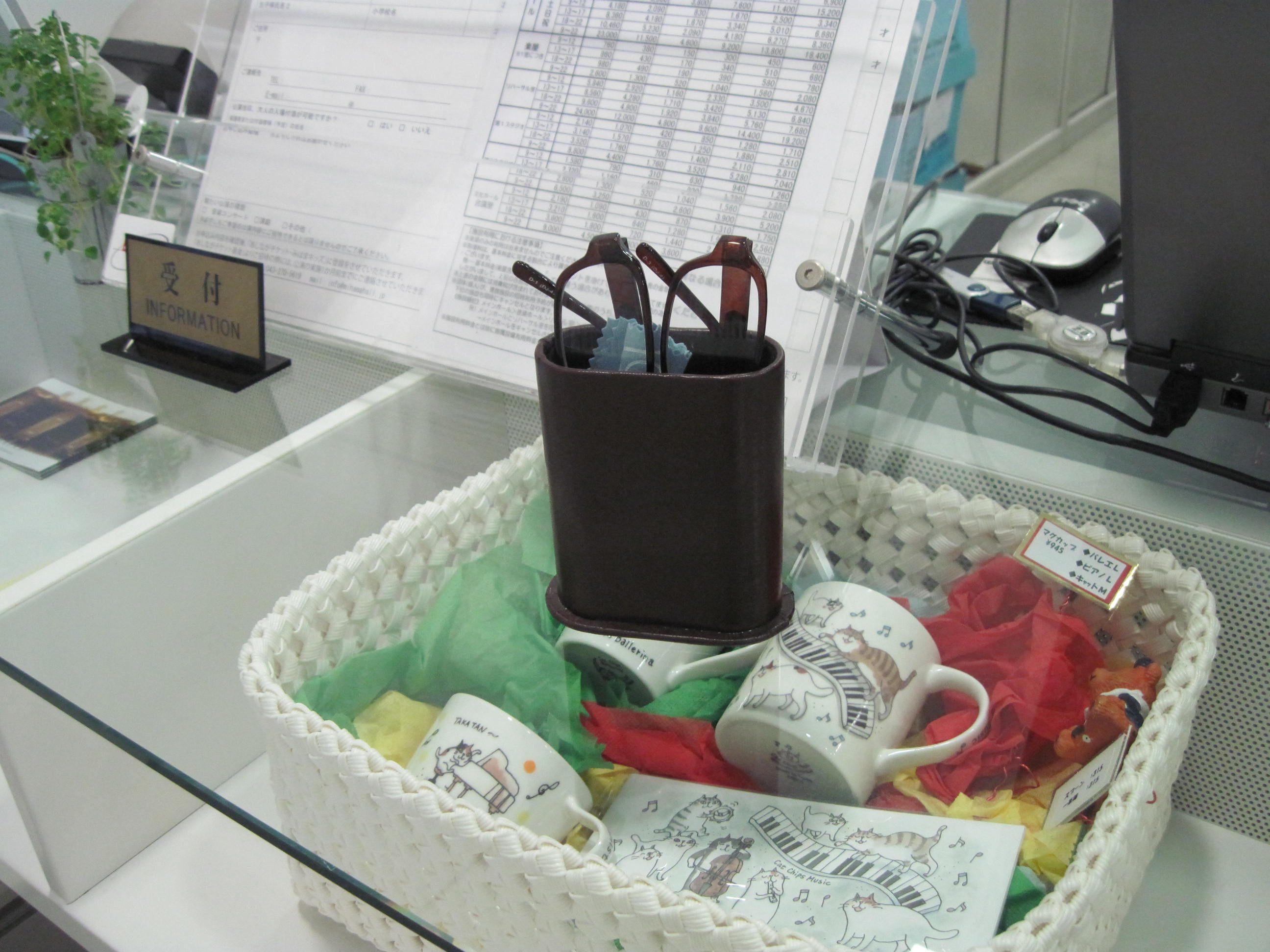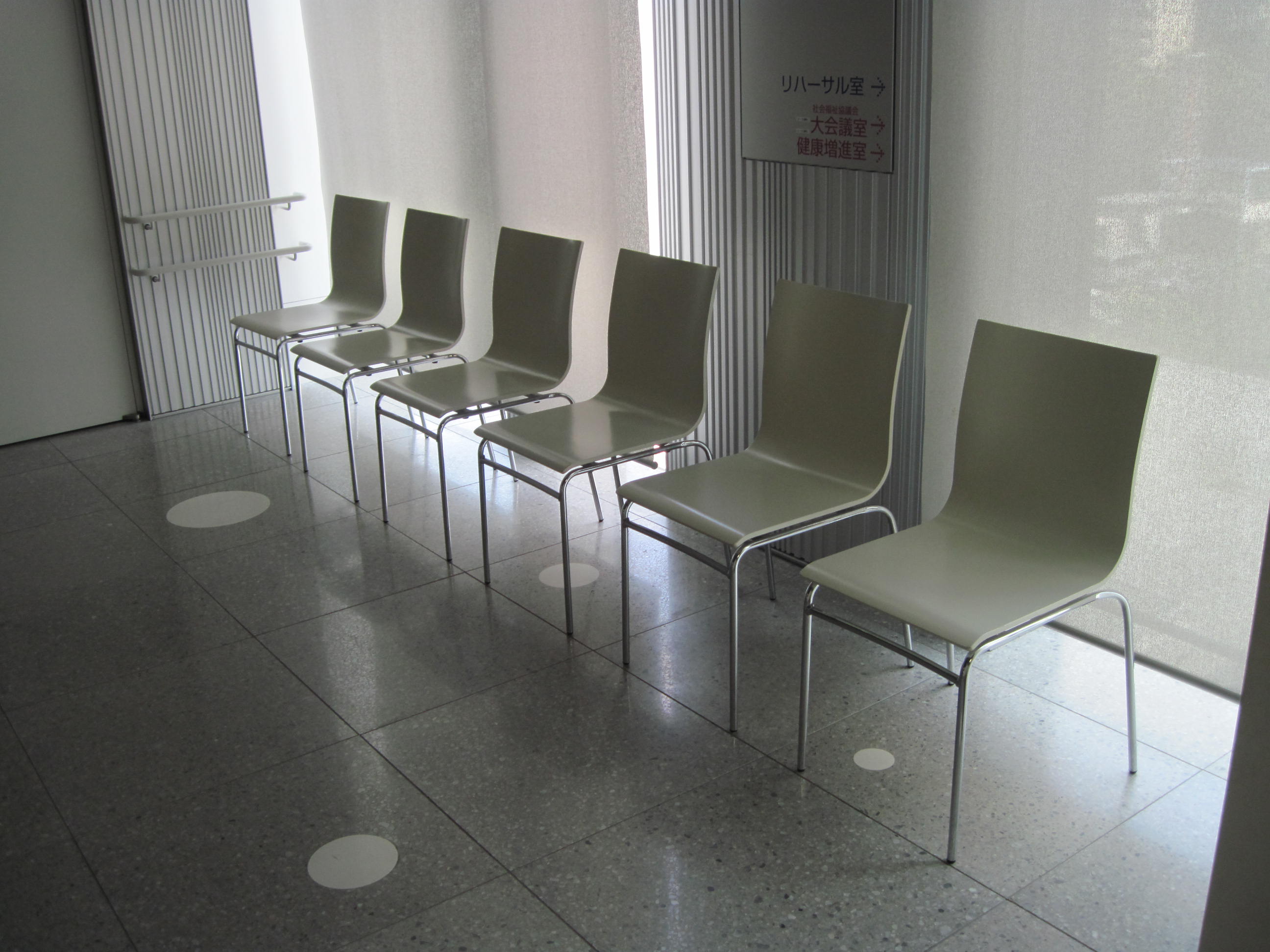 常備車いすがあるAEDがある休憩用いすがある老眼鏡がある