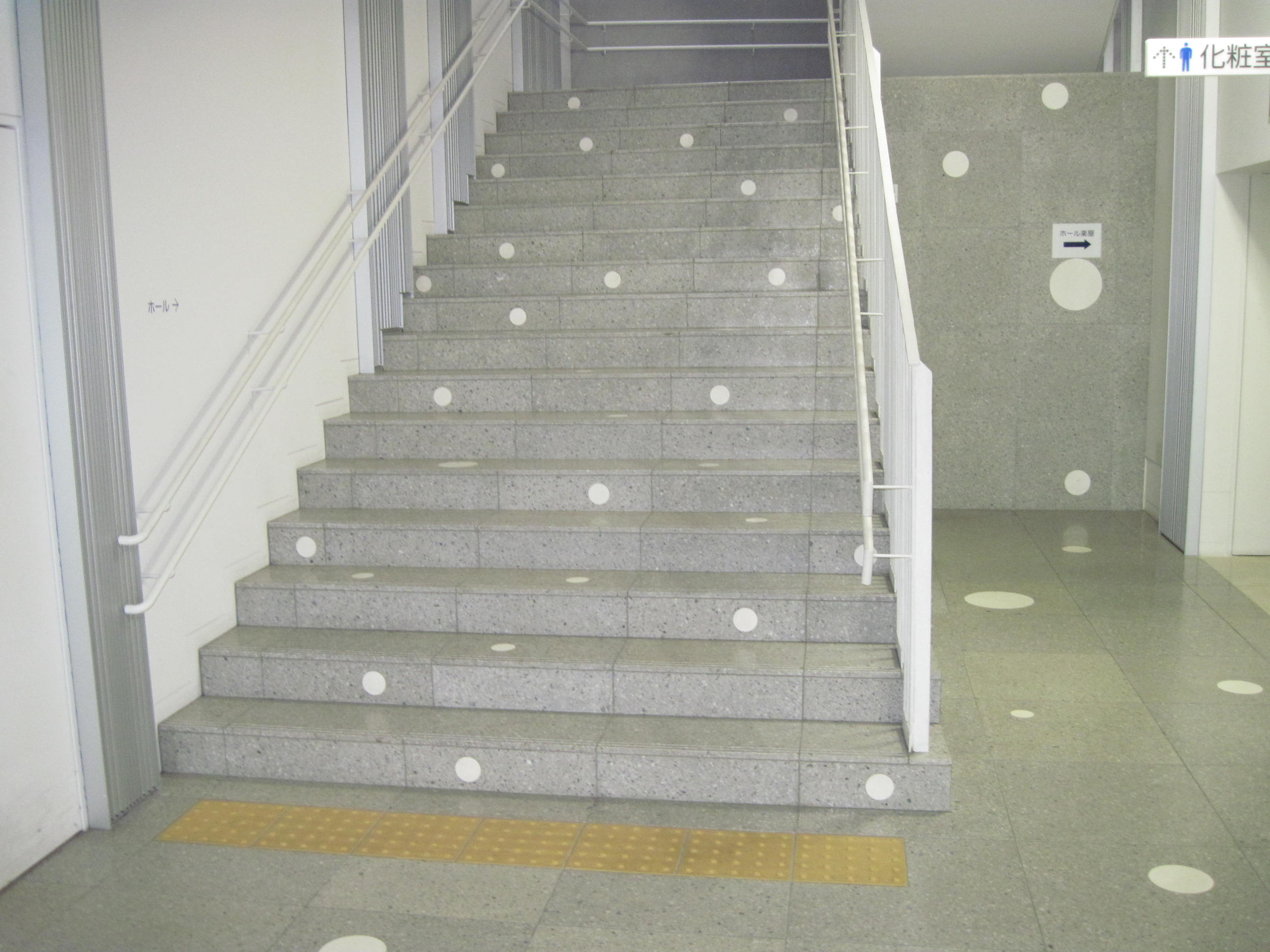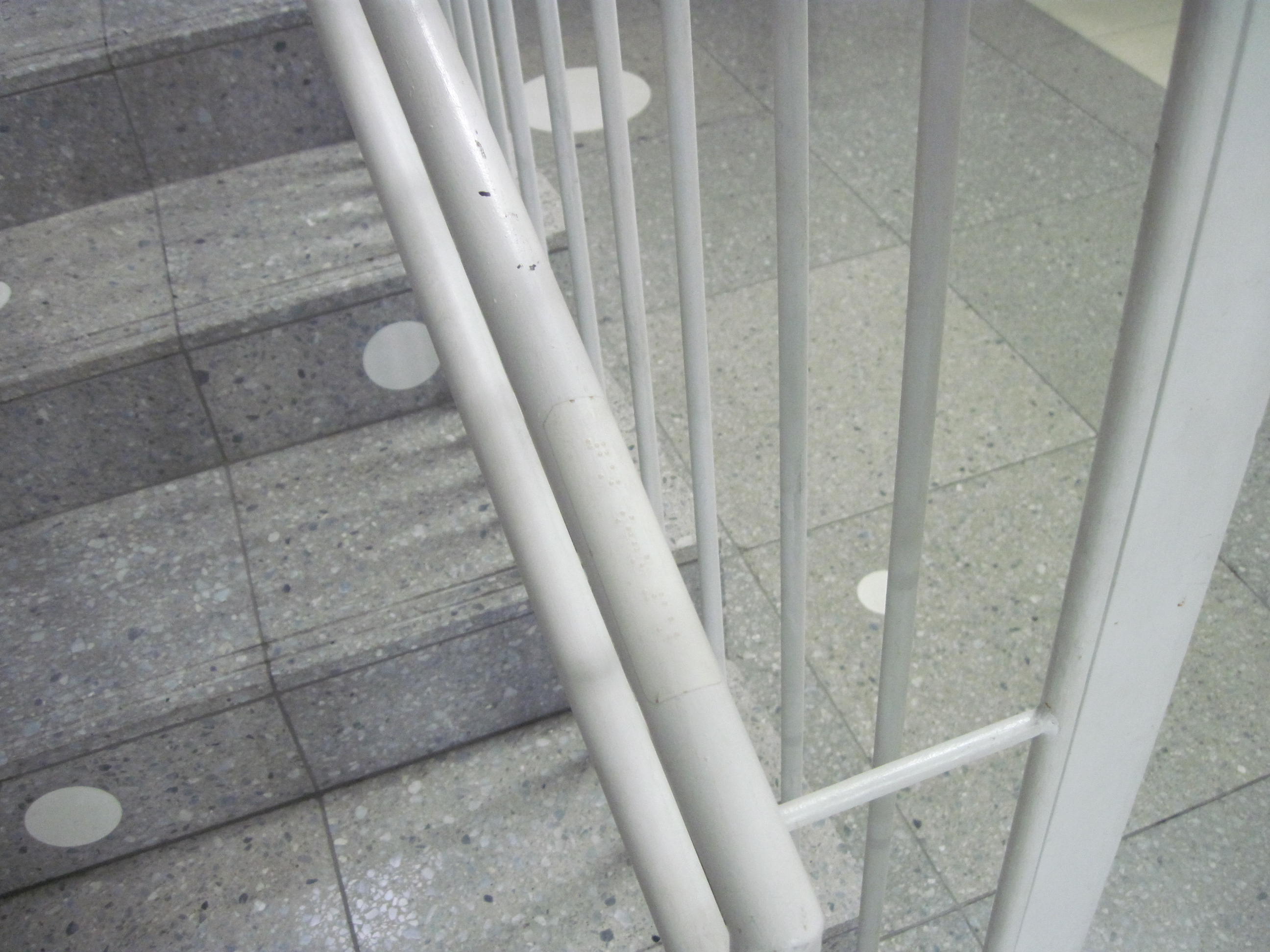 階段の手すりに点字表示がある