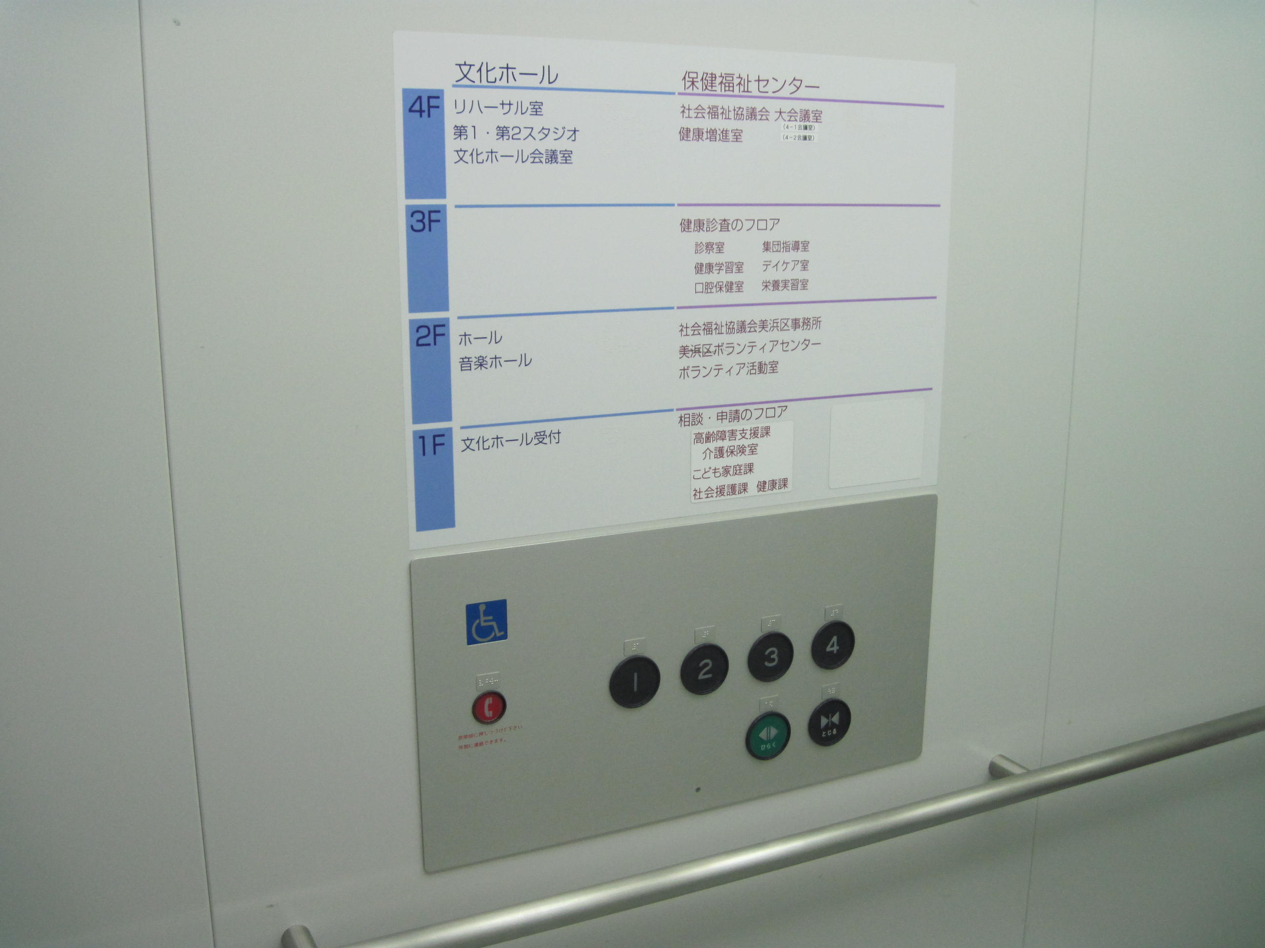 エレベーターがある障害者対応エレベーターがある障害者対応エレベーターに車いす用表示ボタンがある障害者対応エレベーターに点字表示ボタンがある障害者対応エレベーターに手すりがある障害者対応エレベーターに鏡がある階段がある階段の手すりに点字表示がある