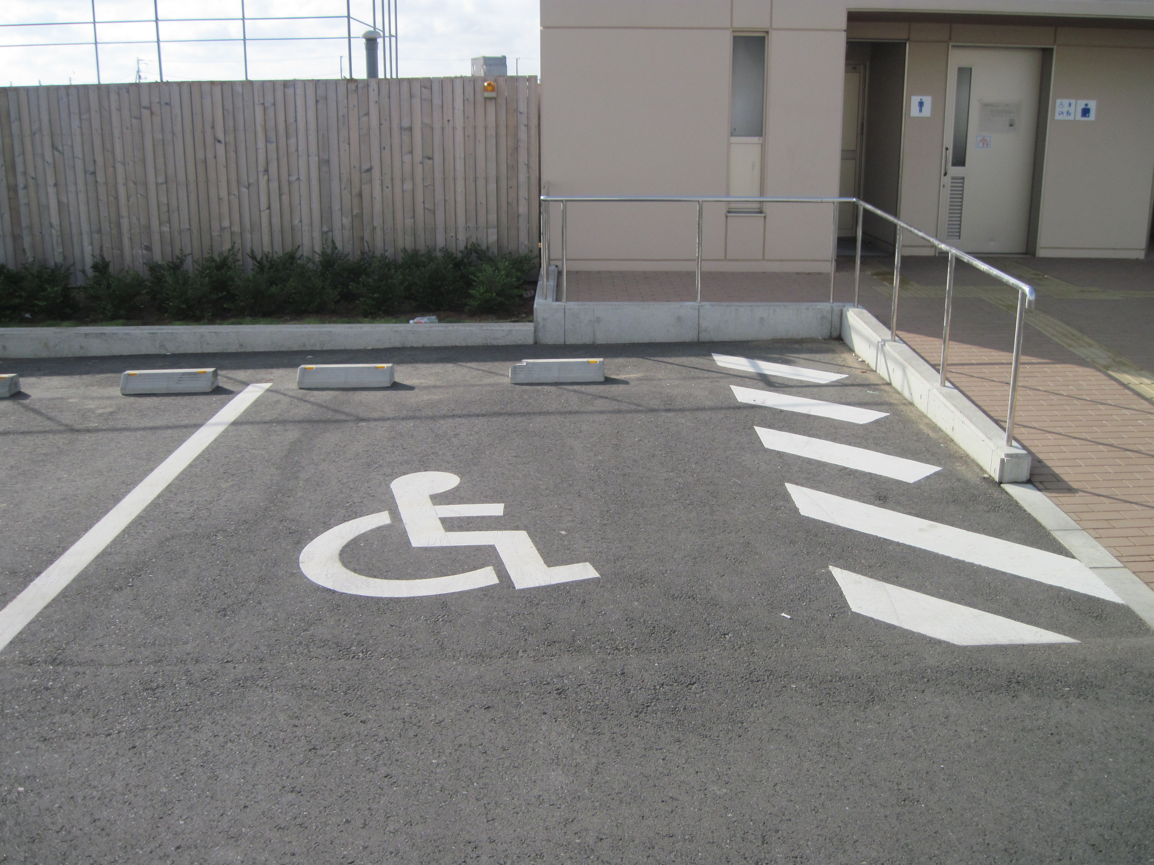 建物の出入口にスロープがあるトイレ