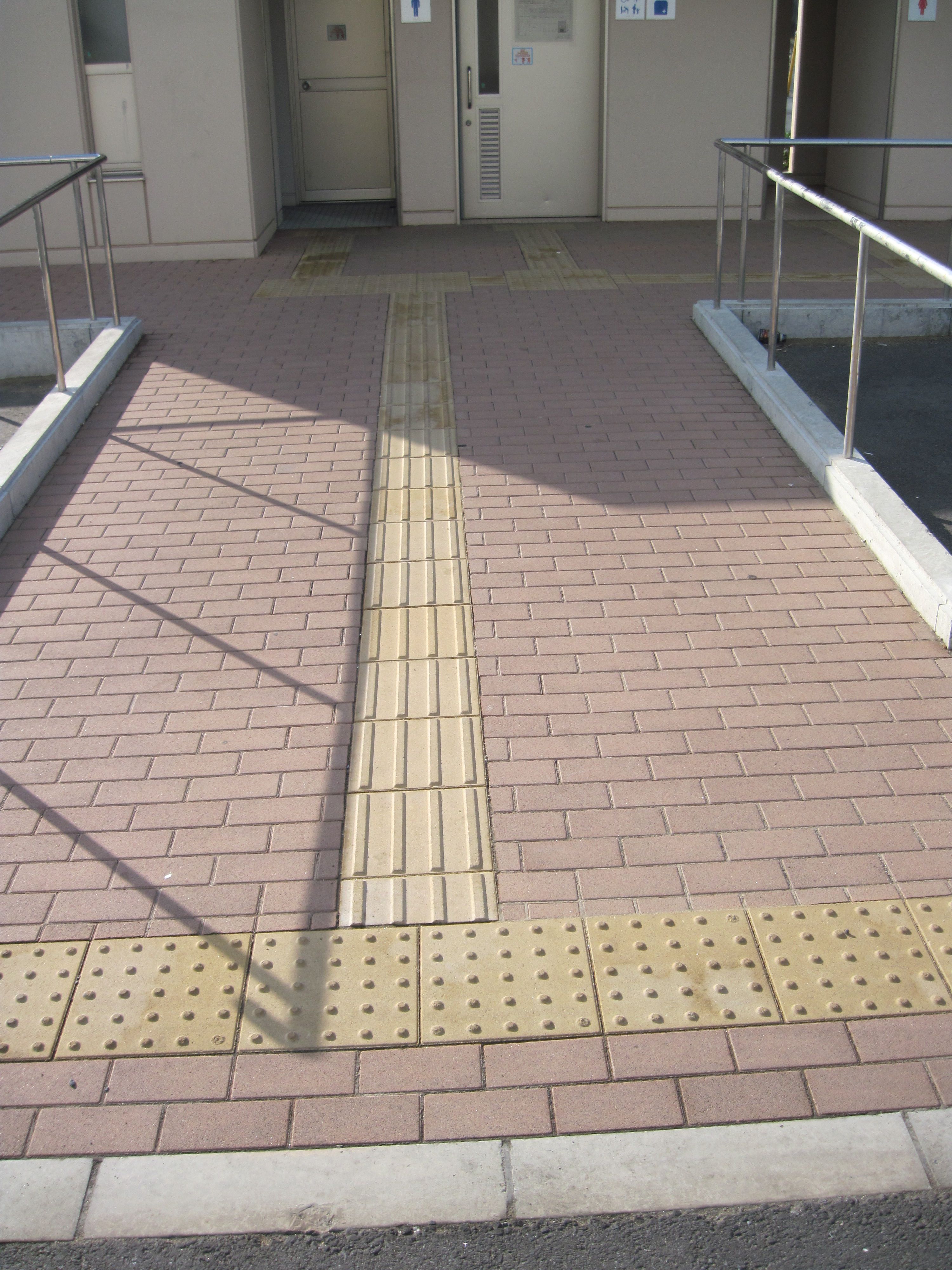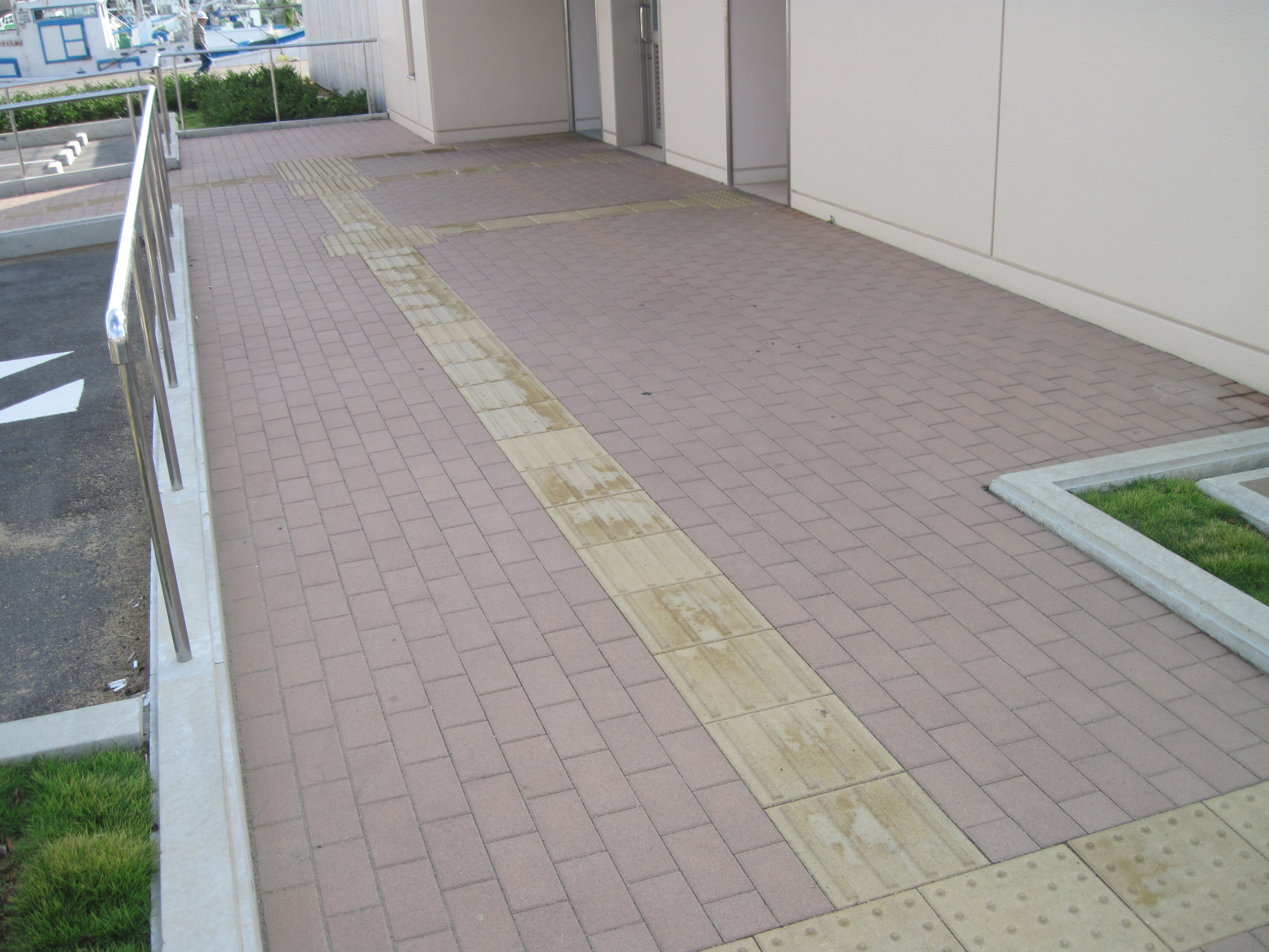 - 歩道から出入口までに視覚障害者誘導用ブロックがある