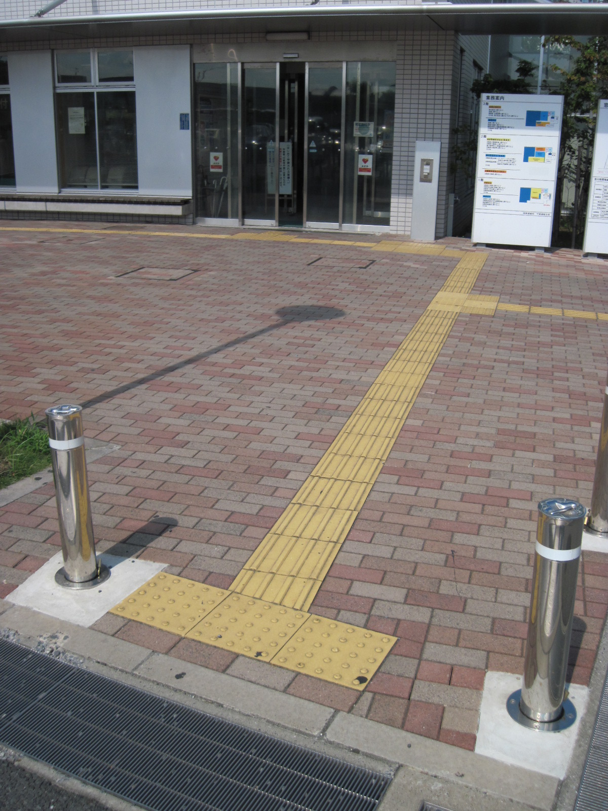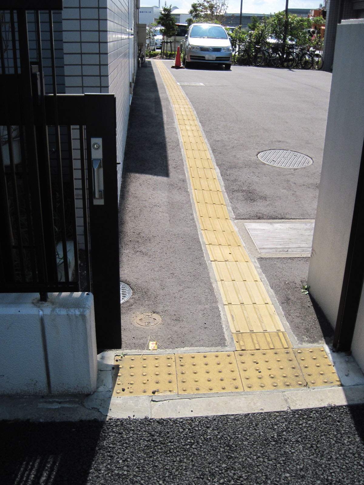 歩道から出入口までに視覚障害者誘導用ブロックがある