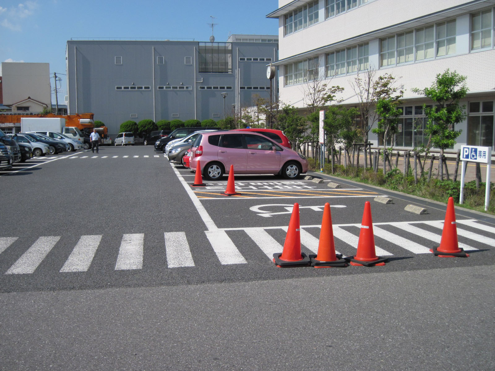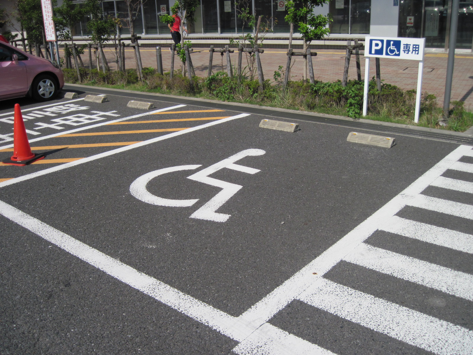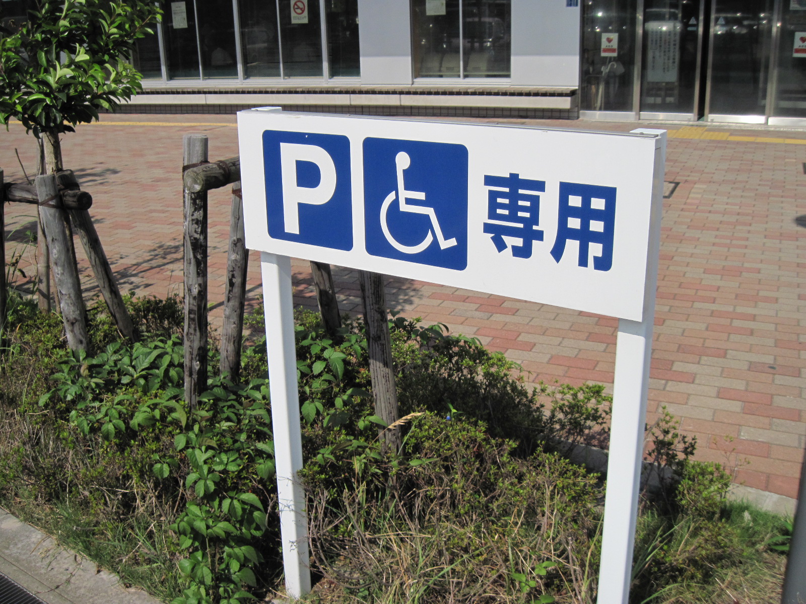一般駐車場がある障害者等用駐車スペースがある障害者等用駐車スペースの案内表示がある