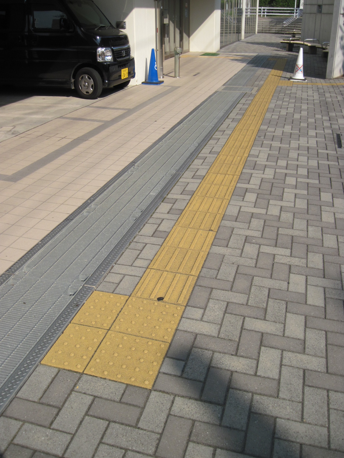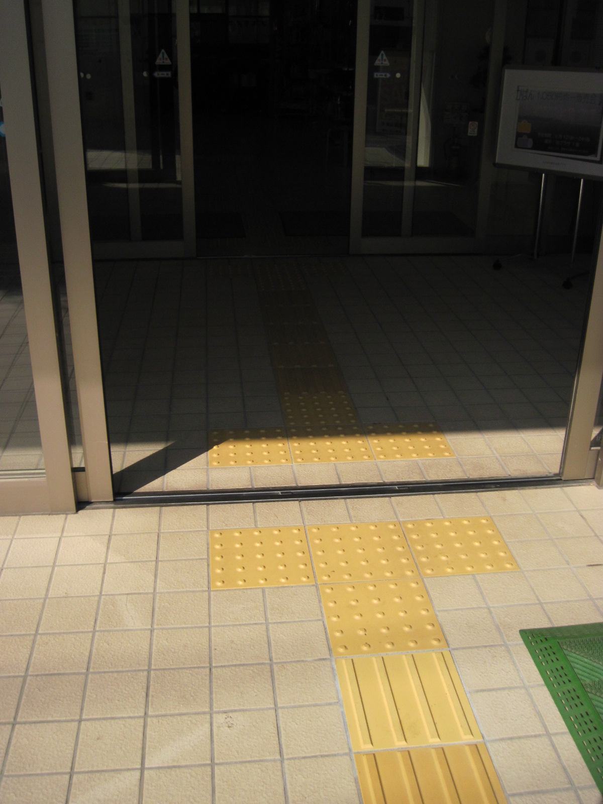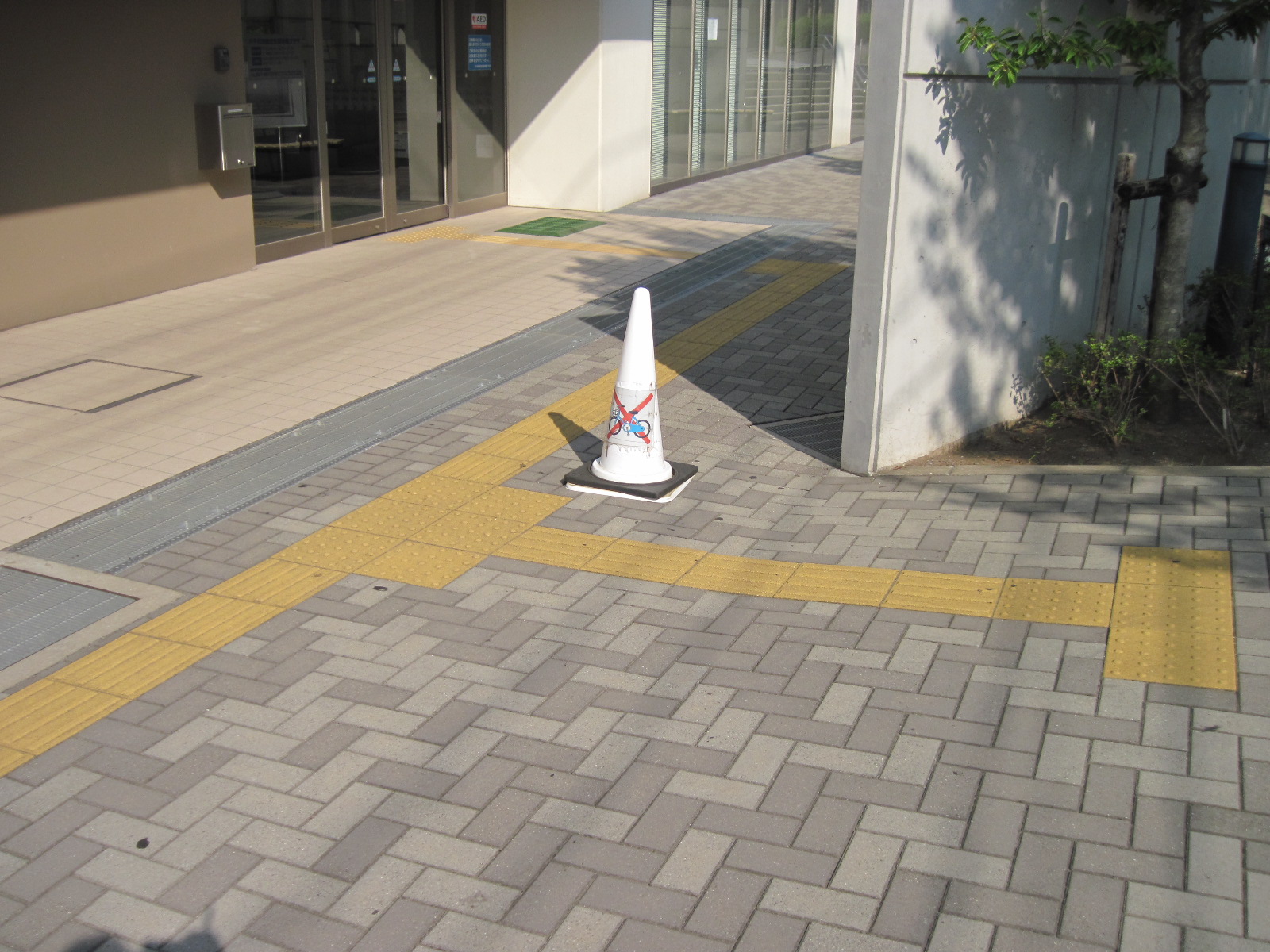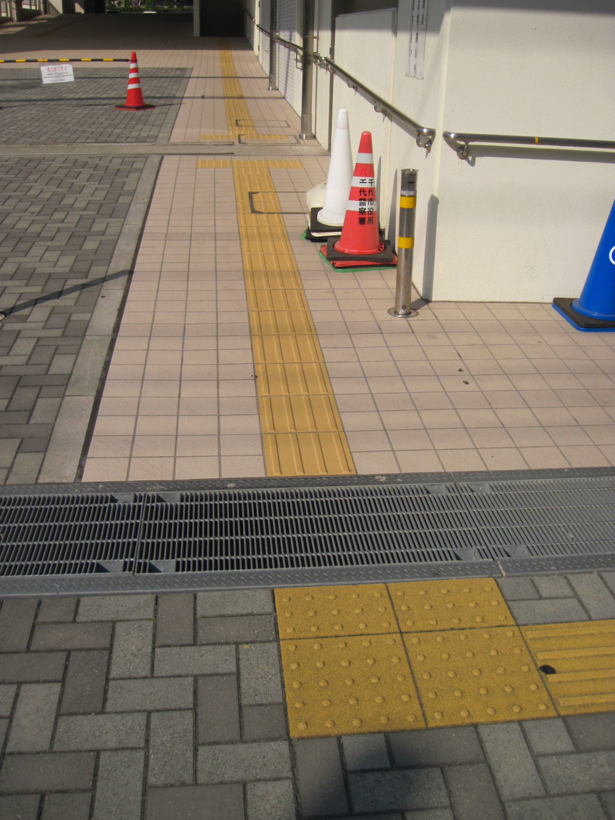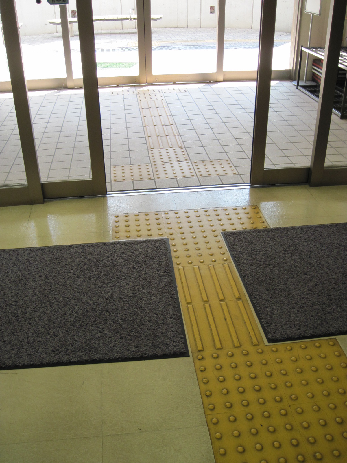 歩道から出入口までに視覚障害者誘導用ブロックがある
