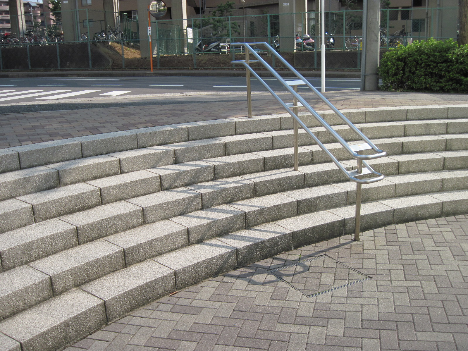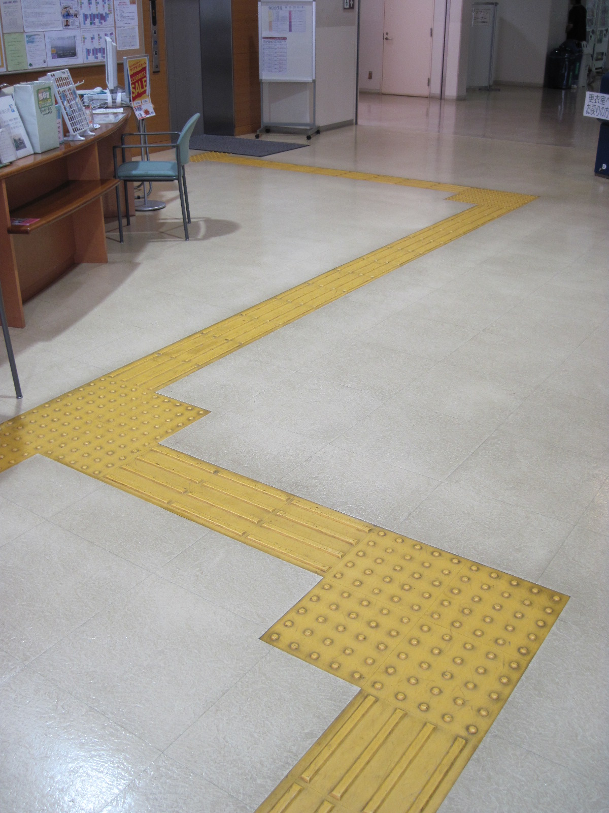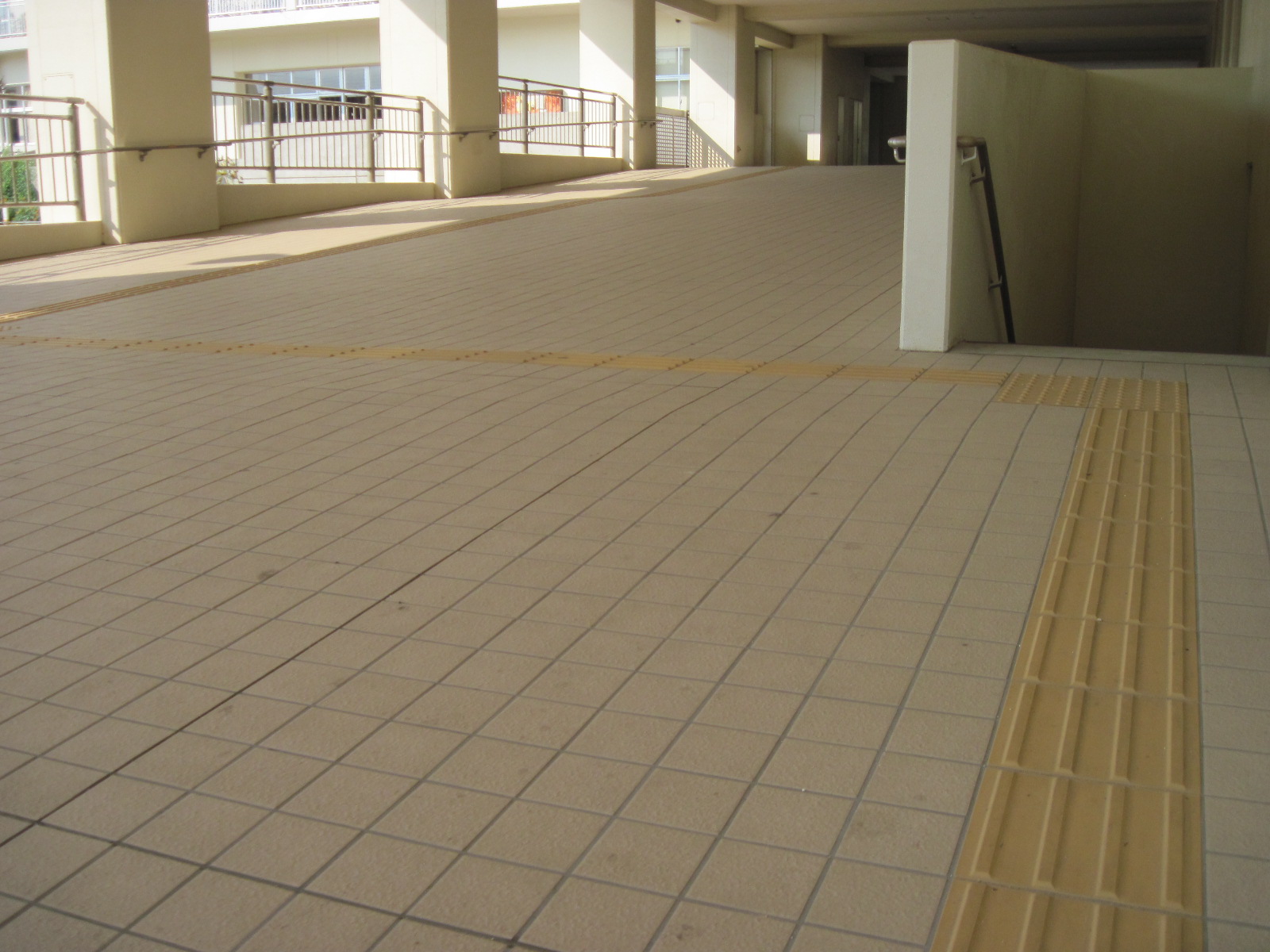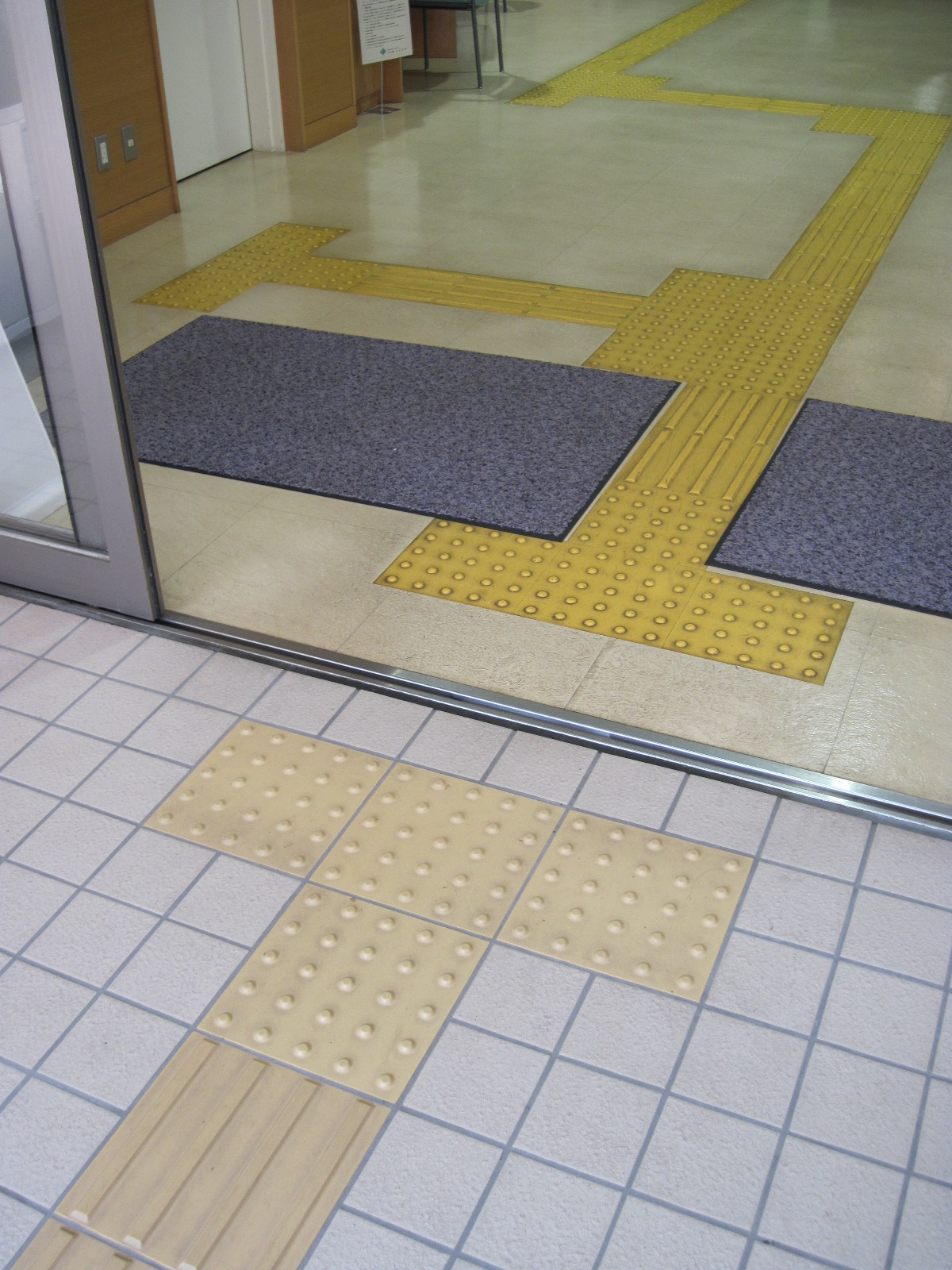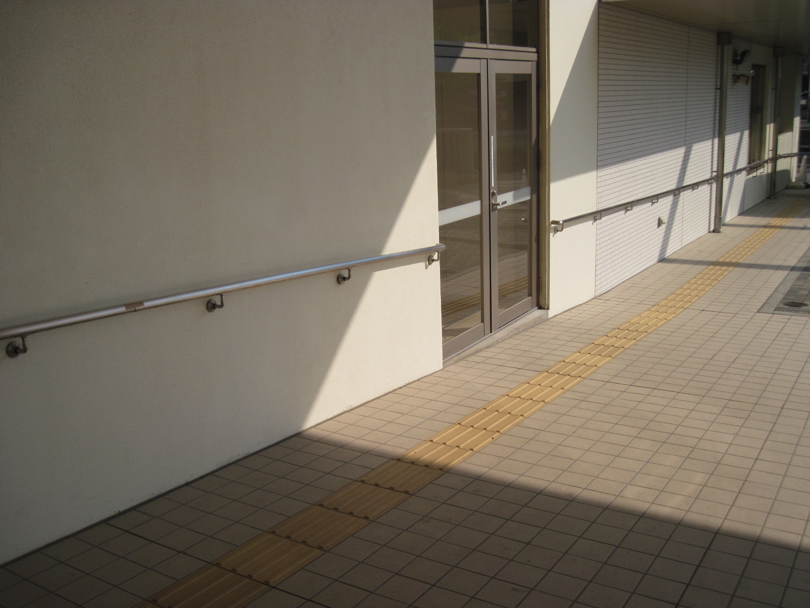 歩道から出入口までに視覚障害者誘導用ブロックがある