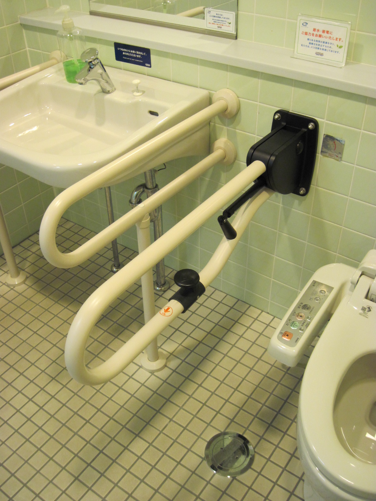 洋式便器(右手すり付き)があるバリアフリートイレ