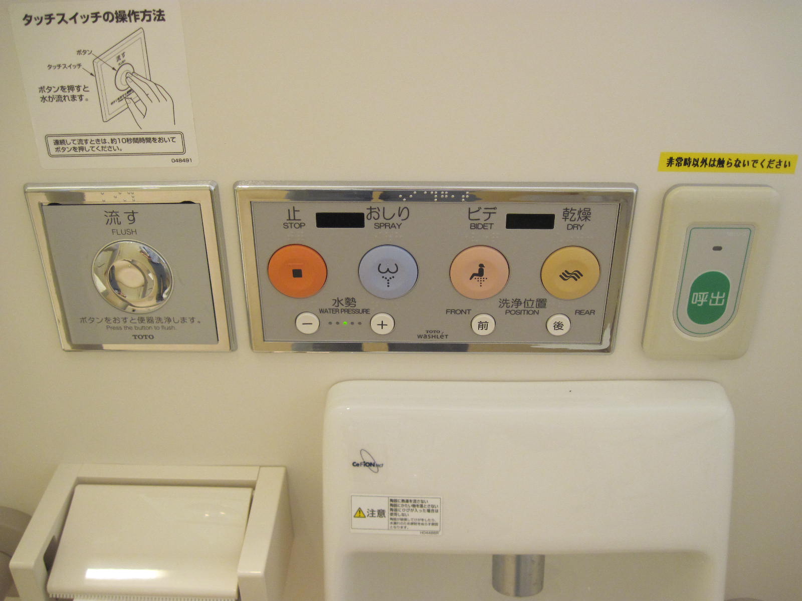 非常ベルが便座から手が届く範囲にある