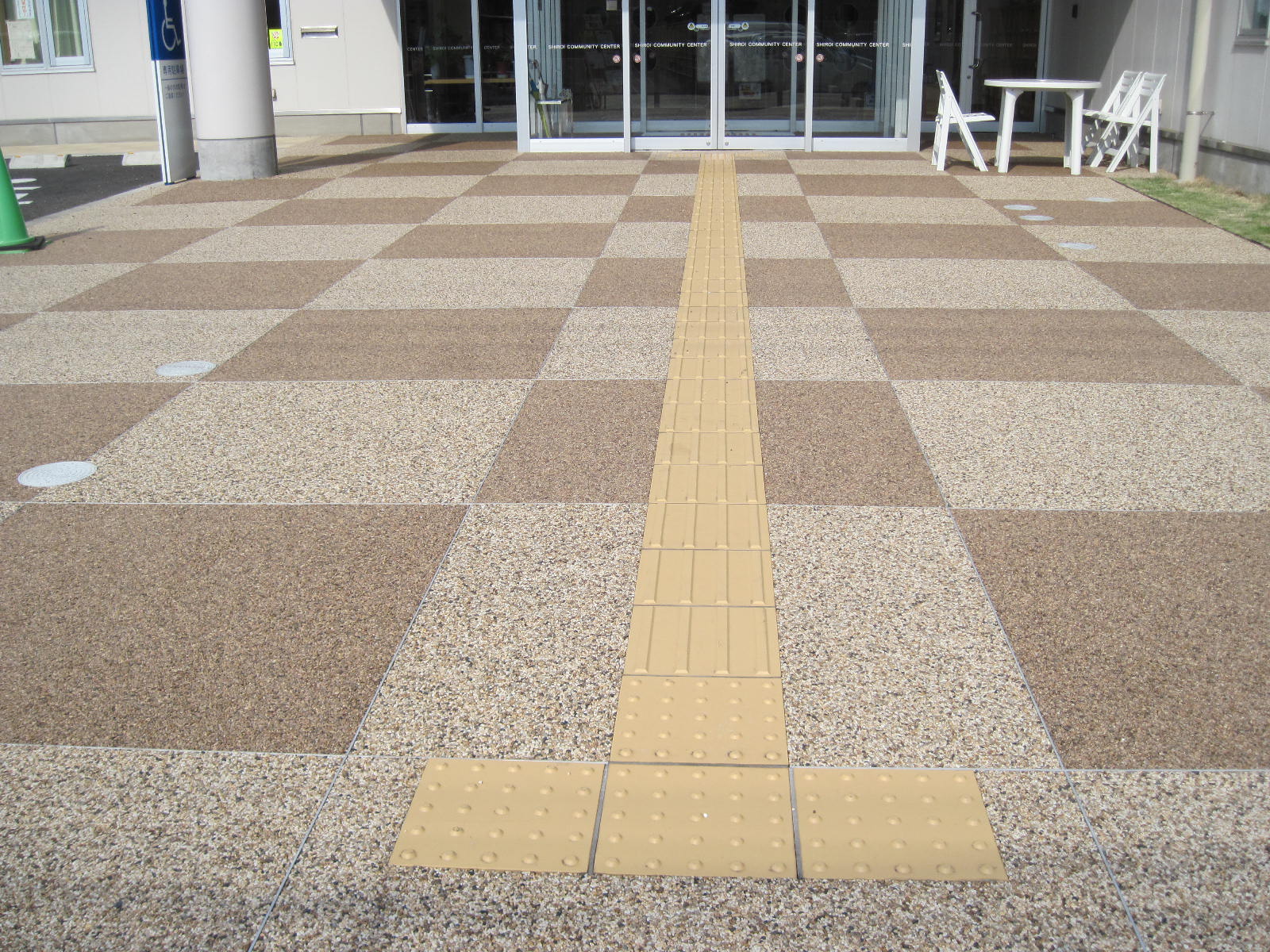 歩道から出入口までに視覚障害者誘導用ブロックがある