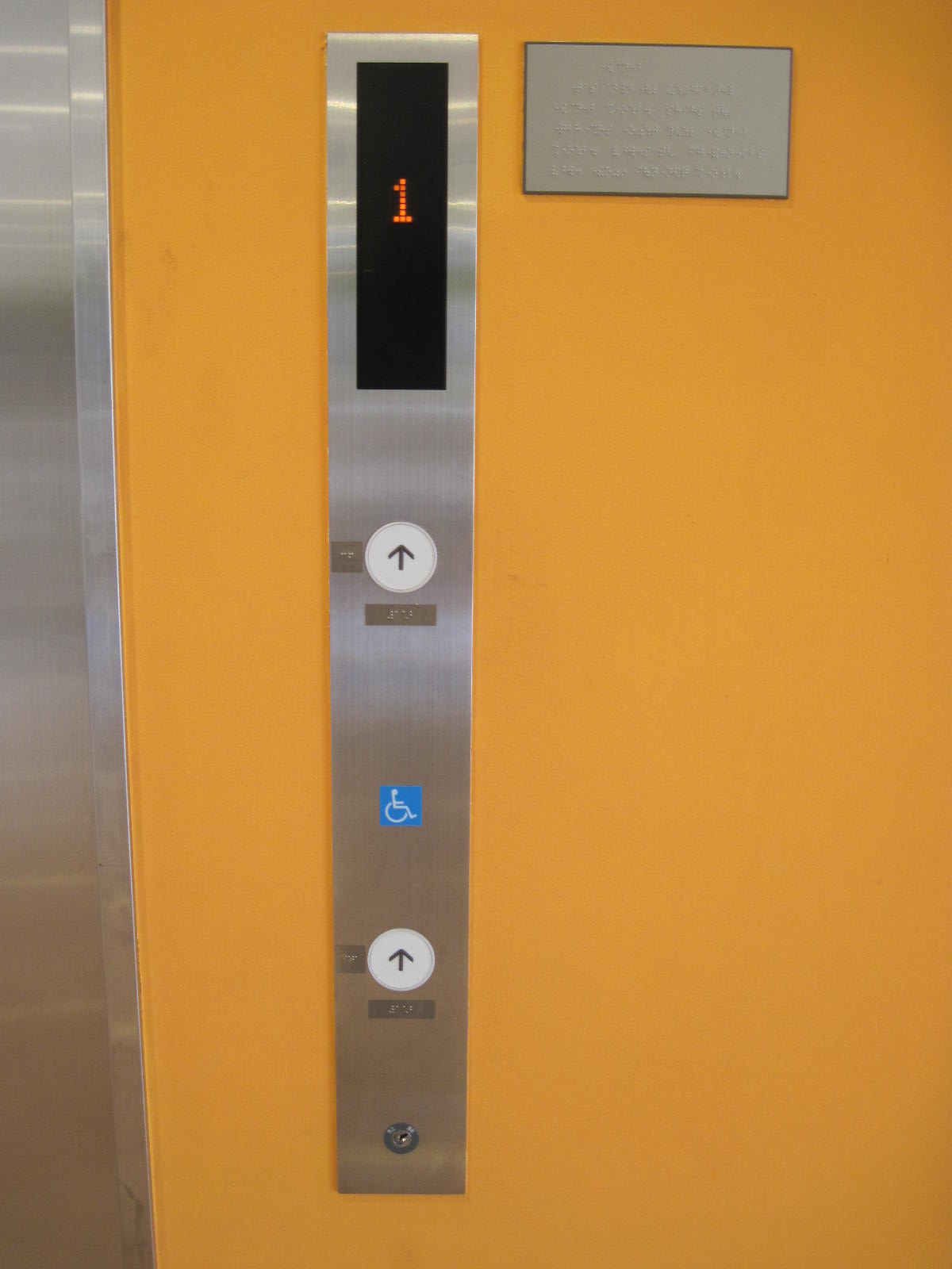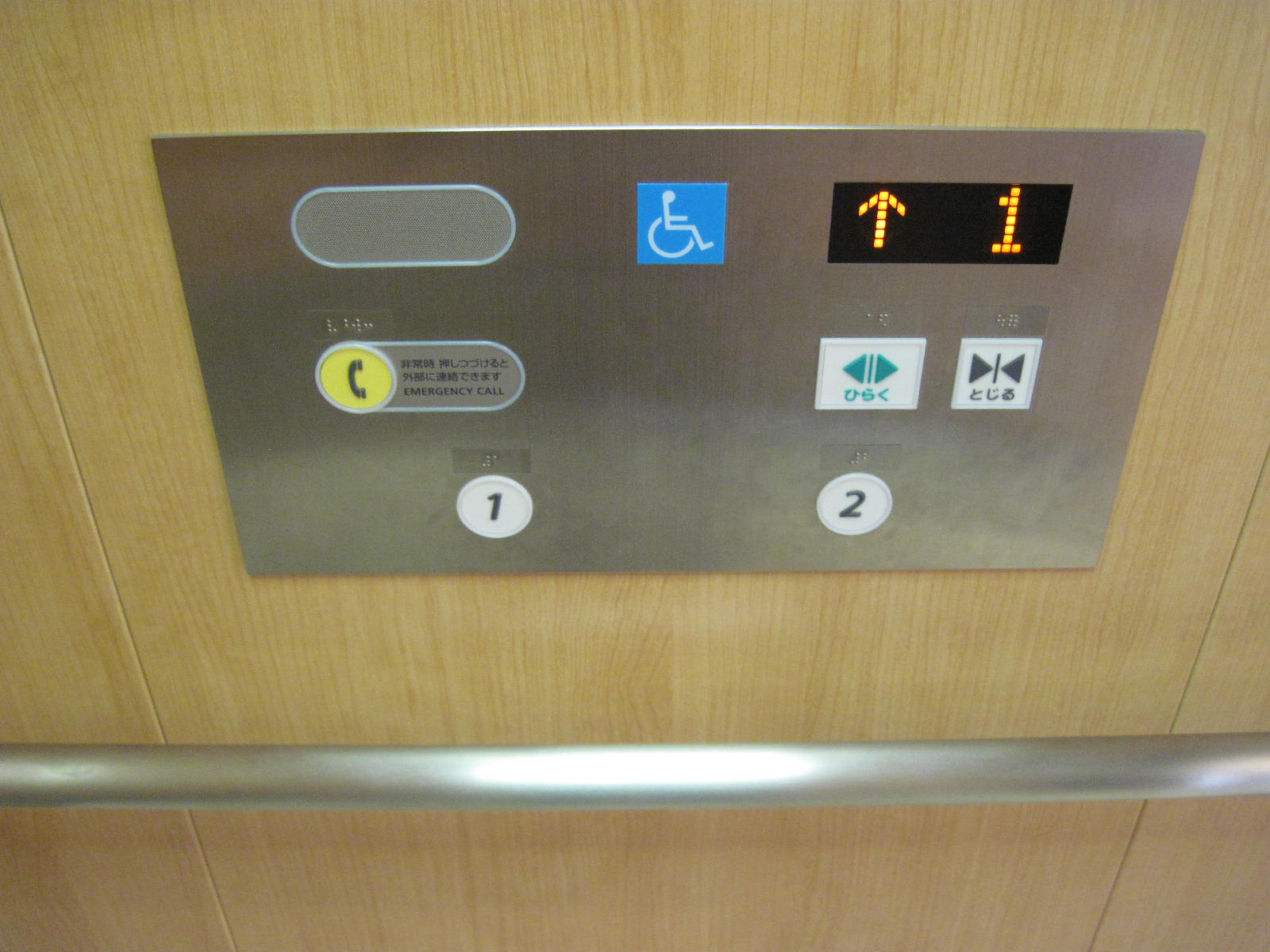 障害者対応エレベーターに点字表示ボタンがある