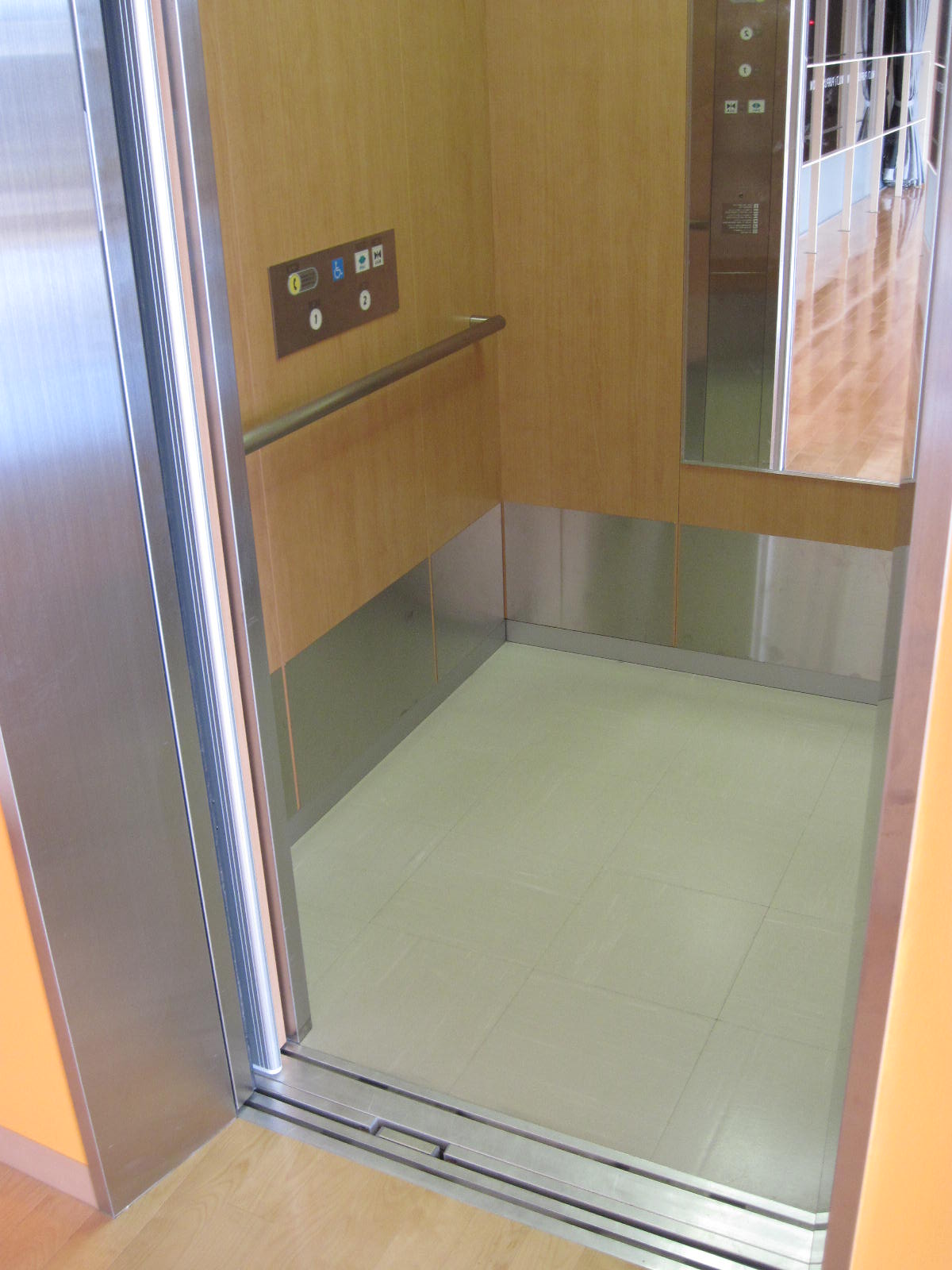 障害者対応エレベーターに鏡がある