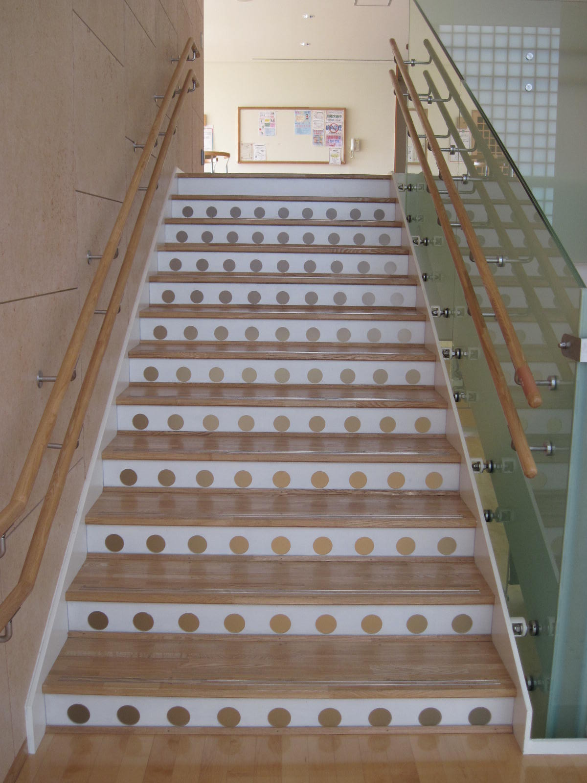 階段の手すりに点字表示がある