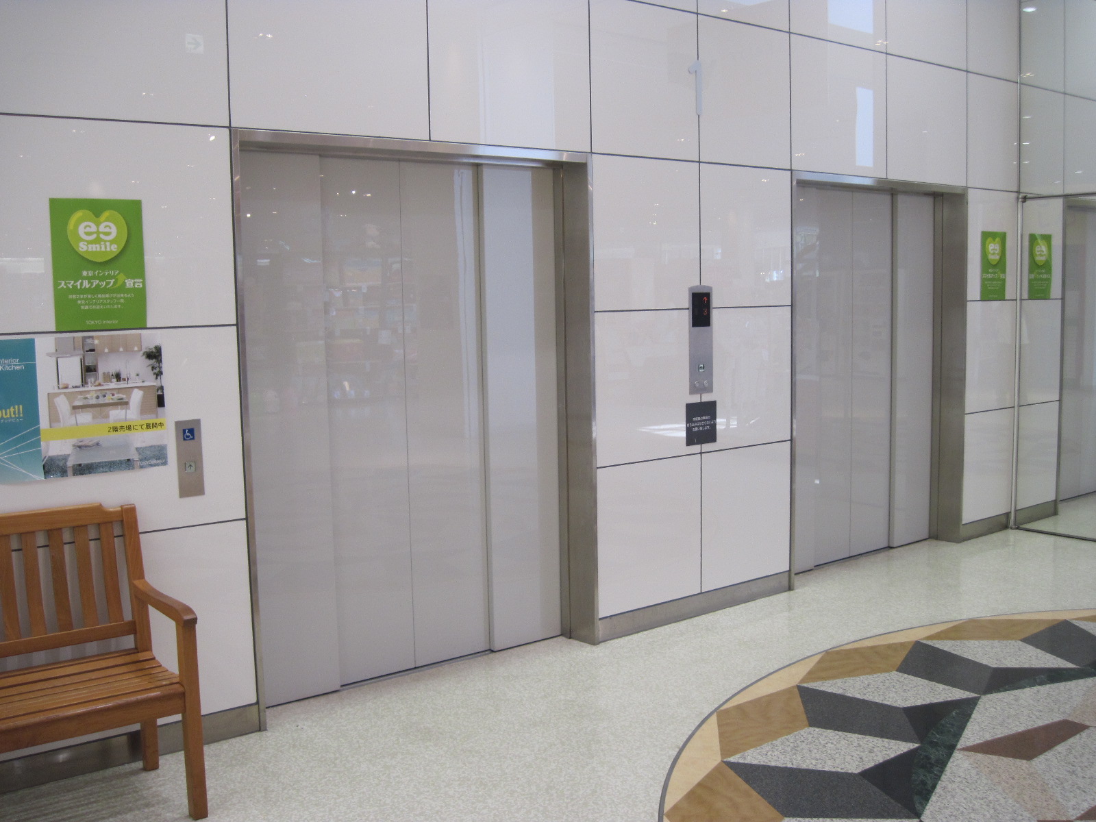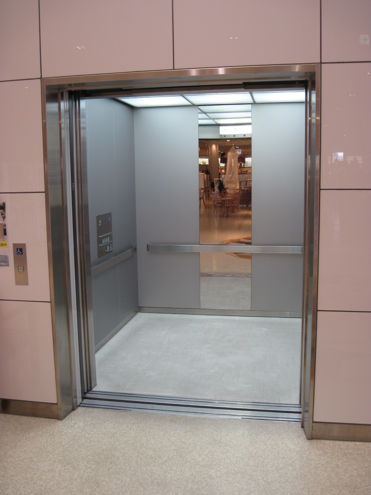 障害者対応エレベーターに鏡がある