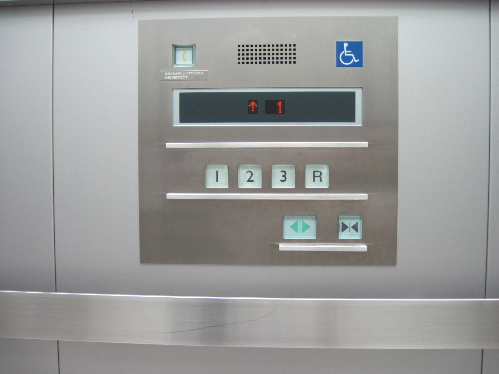 障害者対応エレベーターに点字表示ボタンがある