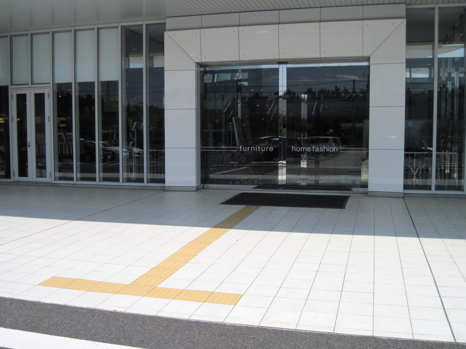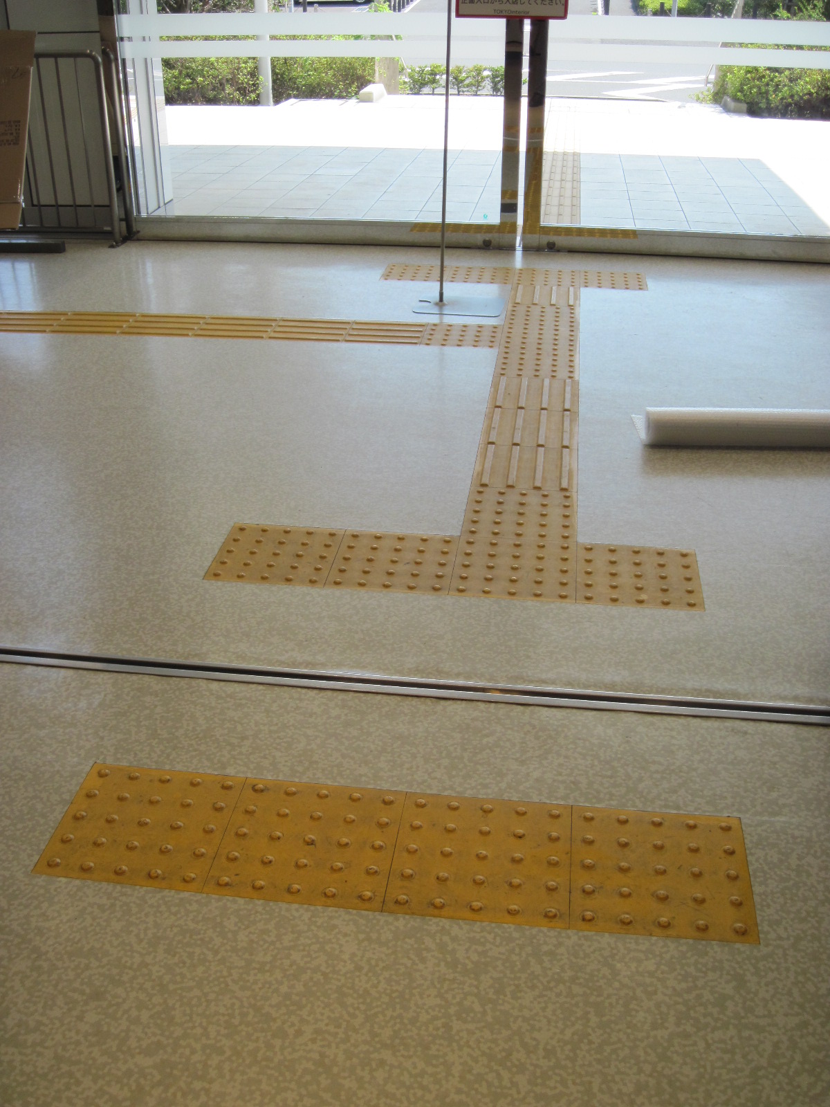 歩道から出入口までに視覚障害者誘導用ブロックがある