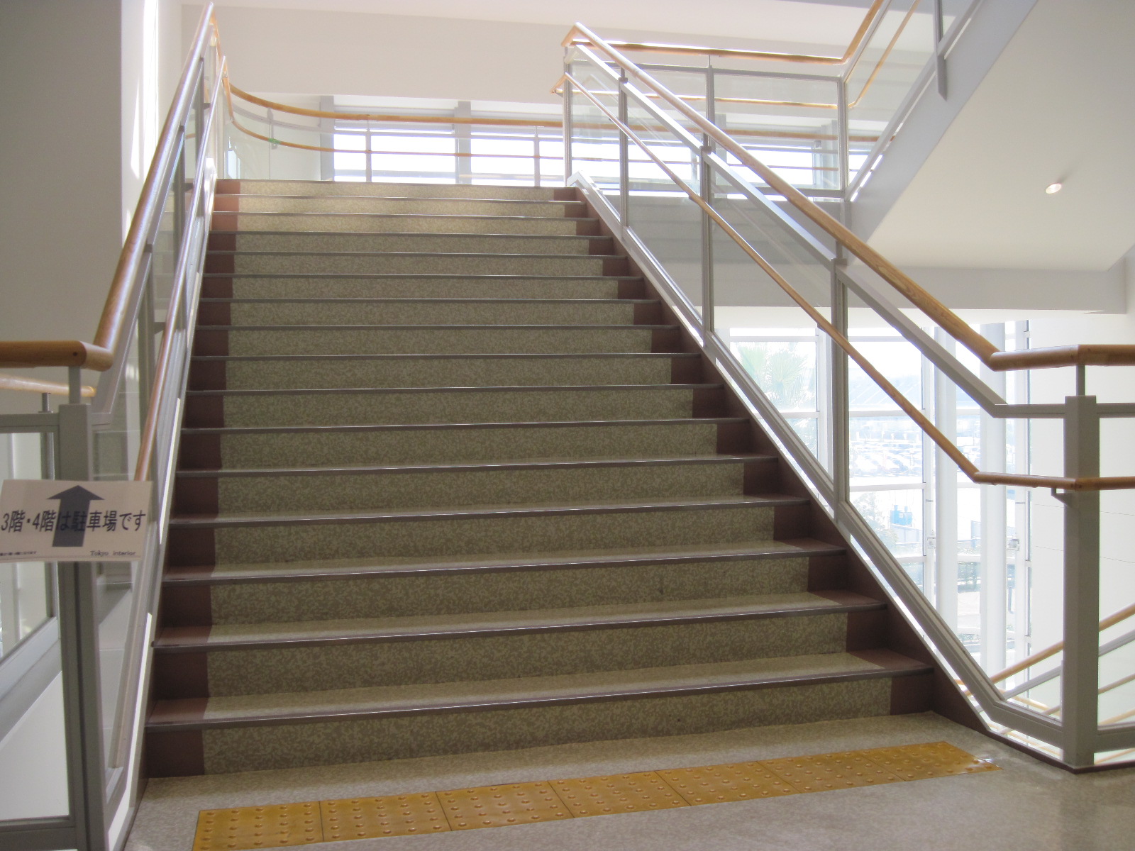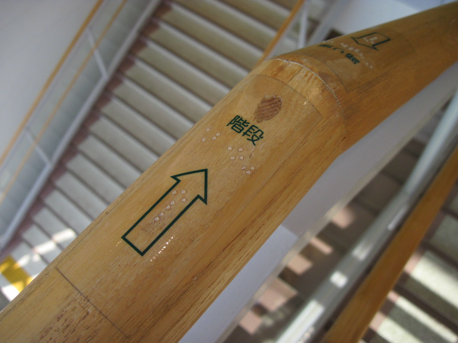 階段の手すりに点字表示がある