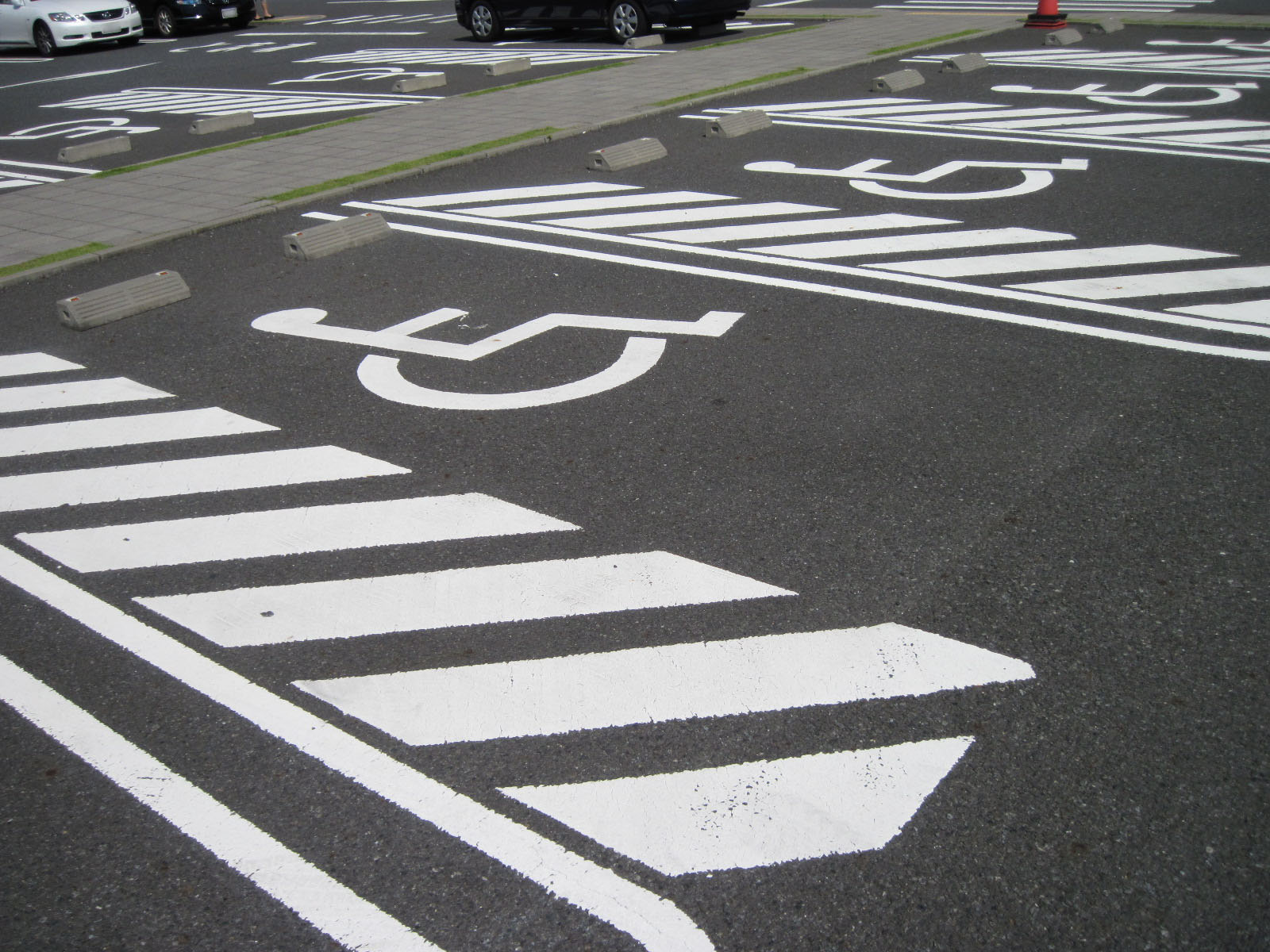 障害者等用駐車スペースの案内表示がある敷地内通路