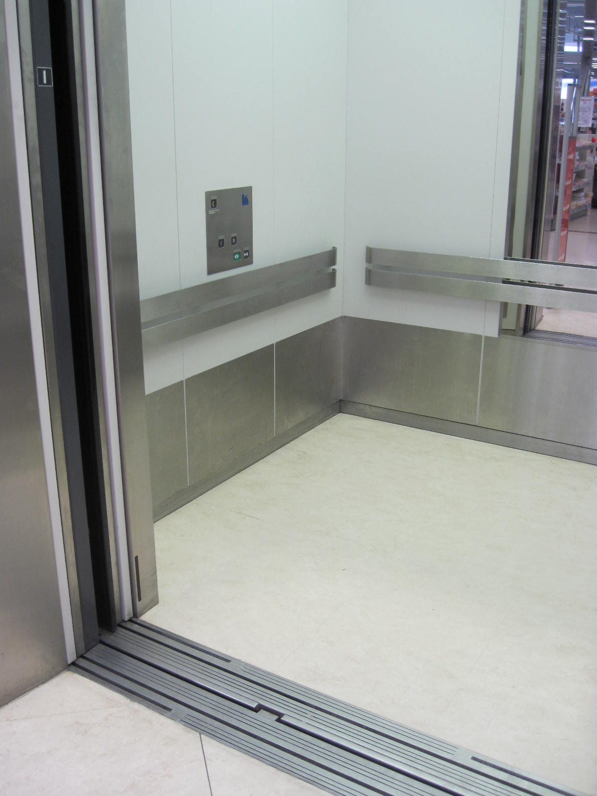 障害者対応エレベーターに手すりがある