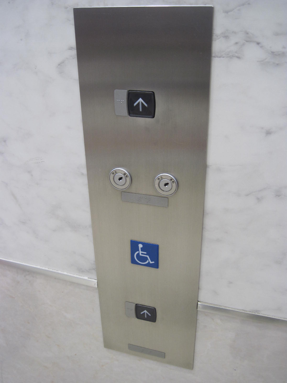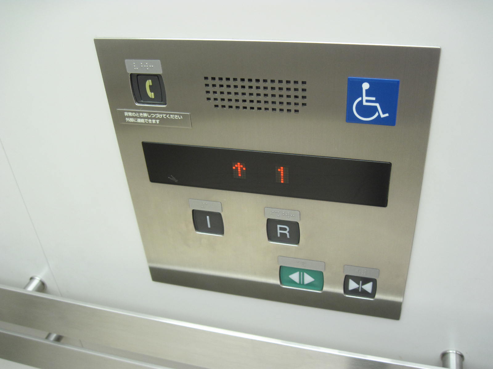障害者対応エレベーターに点字表示ボタンがある