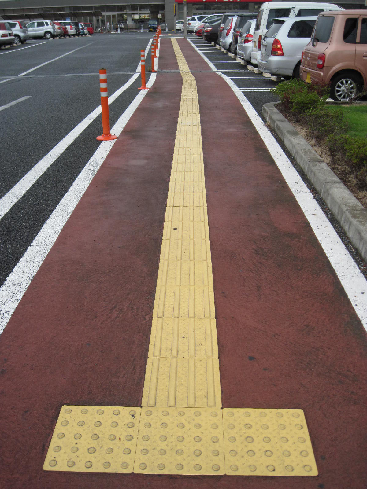 障害者等用駐車スペースの案内表示がある敷地内通路