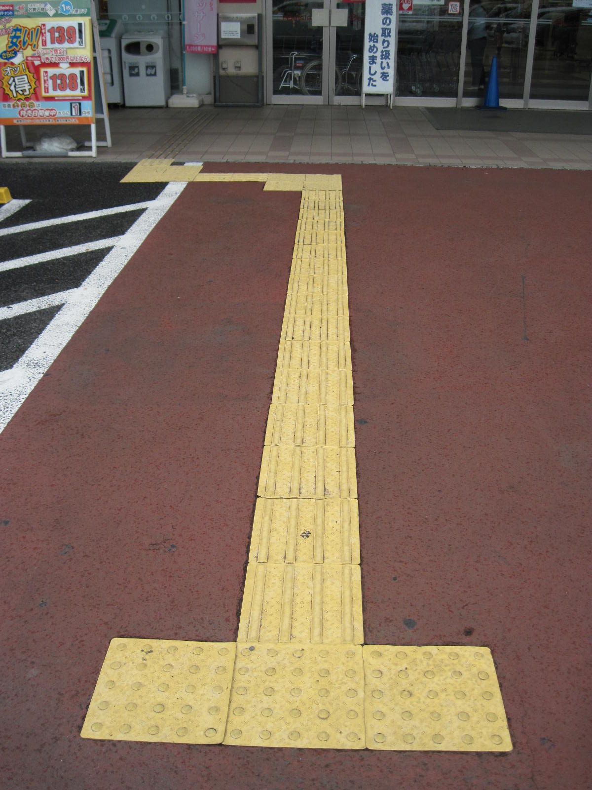 歩道から出入口までに視覚障害者誘導用ブロックがある