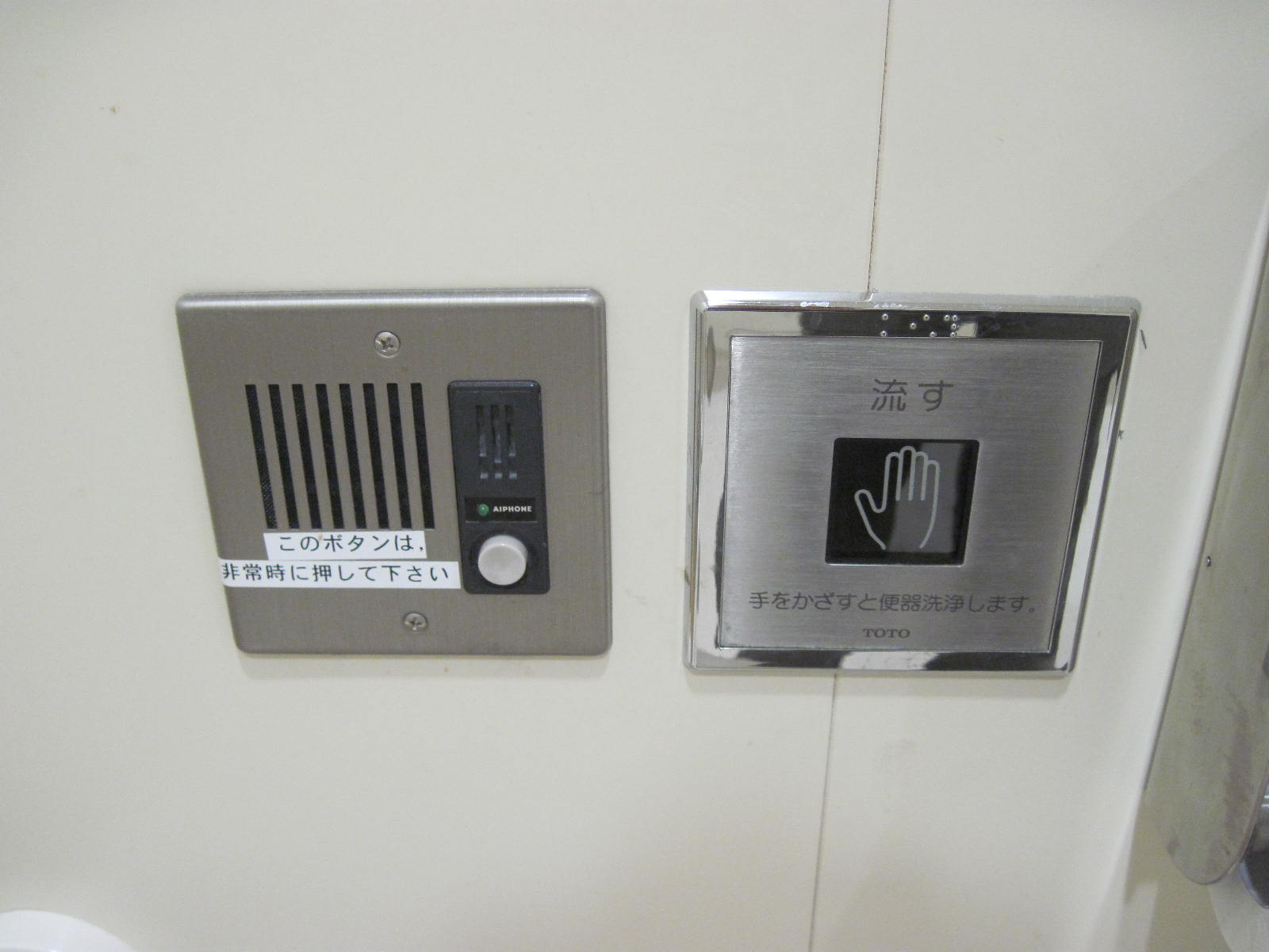 非常ベルが便座から手が届く範囲にある