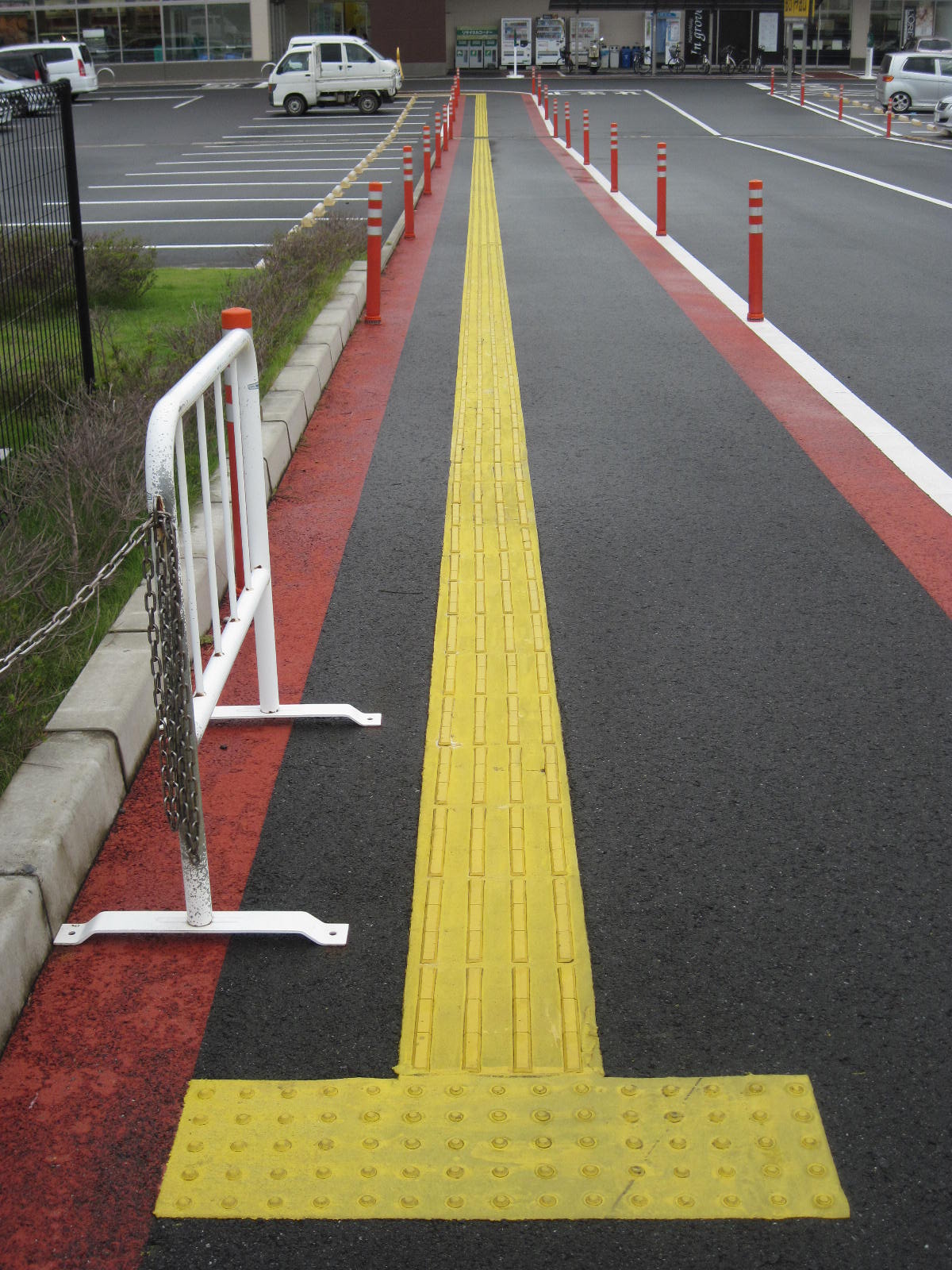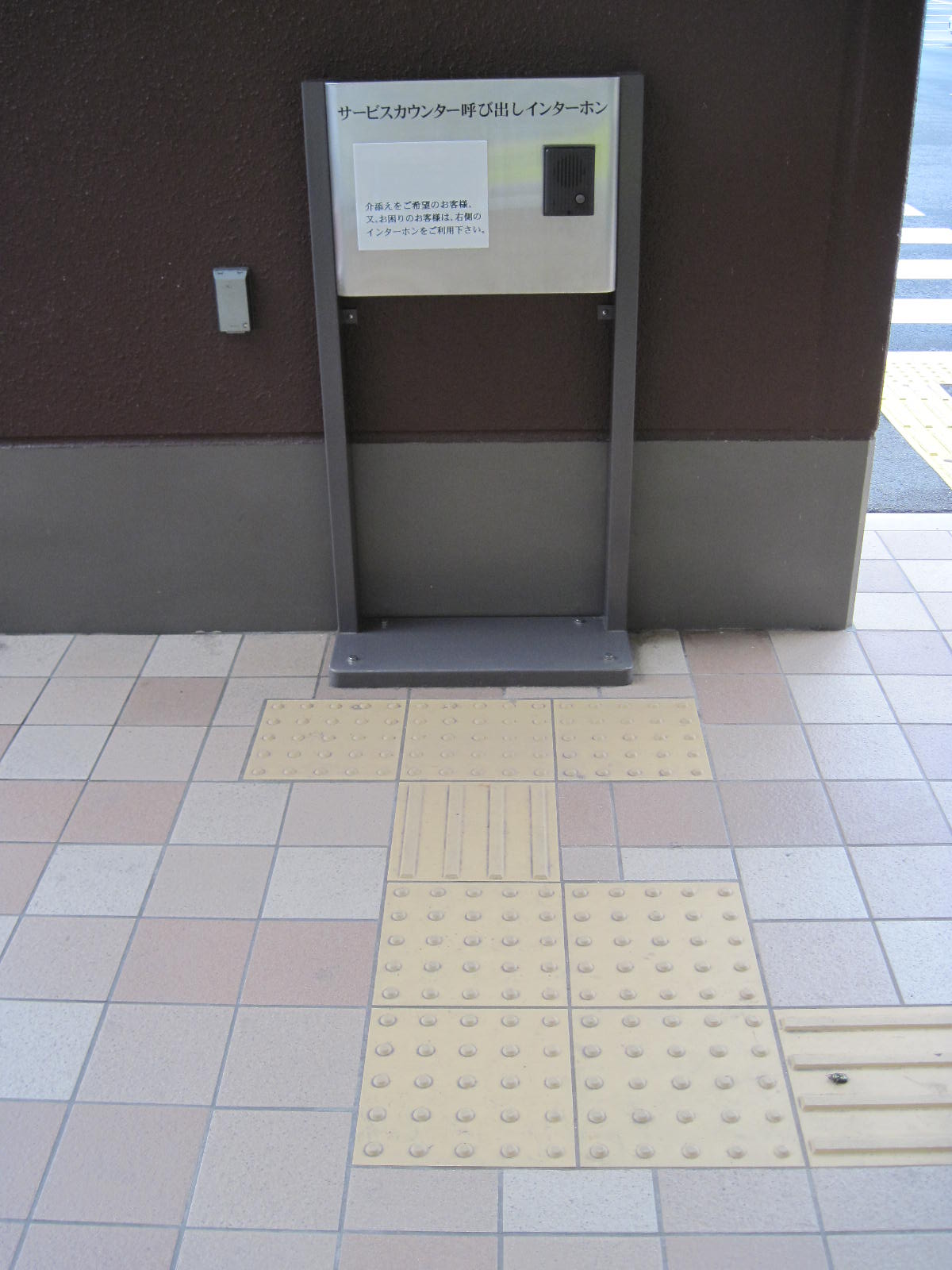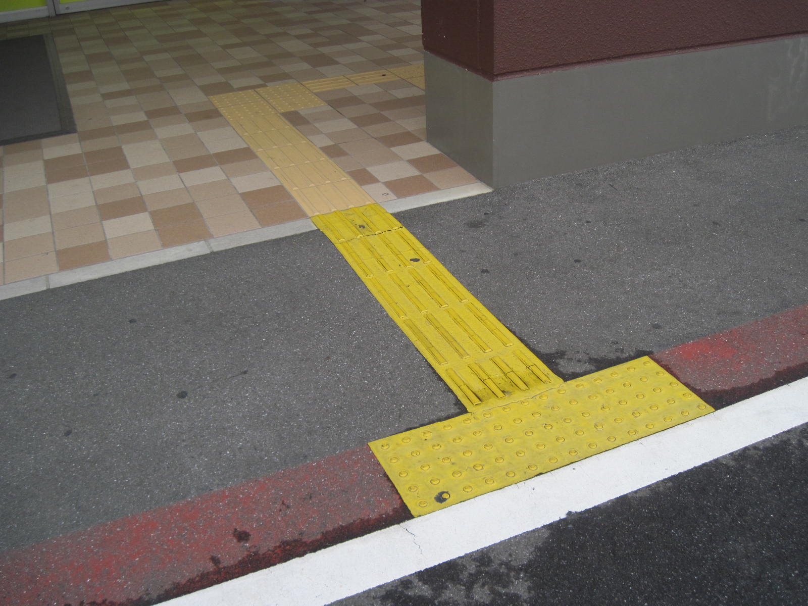 歩道から出入口までに視覚障害者誘導用ブロックがある