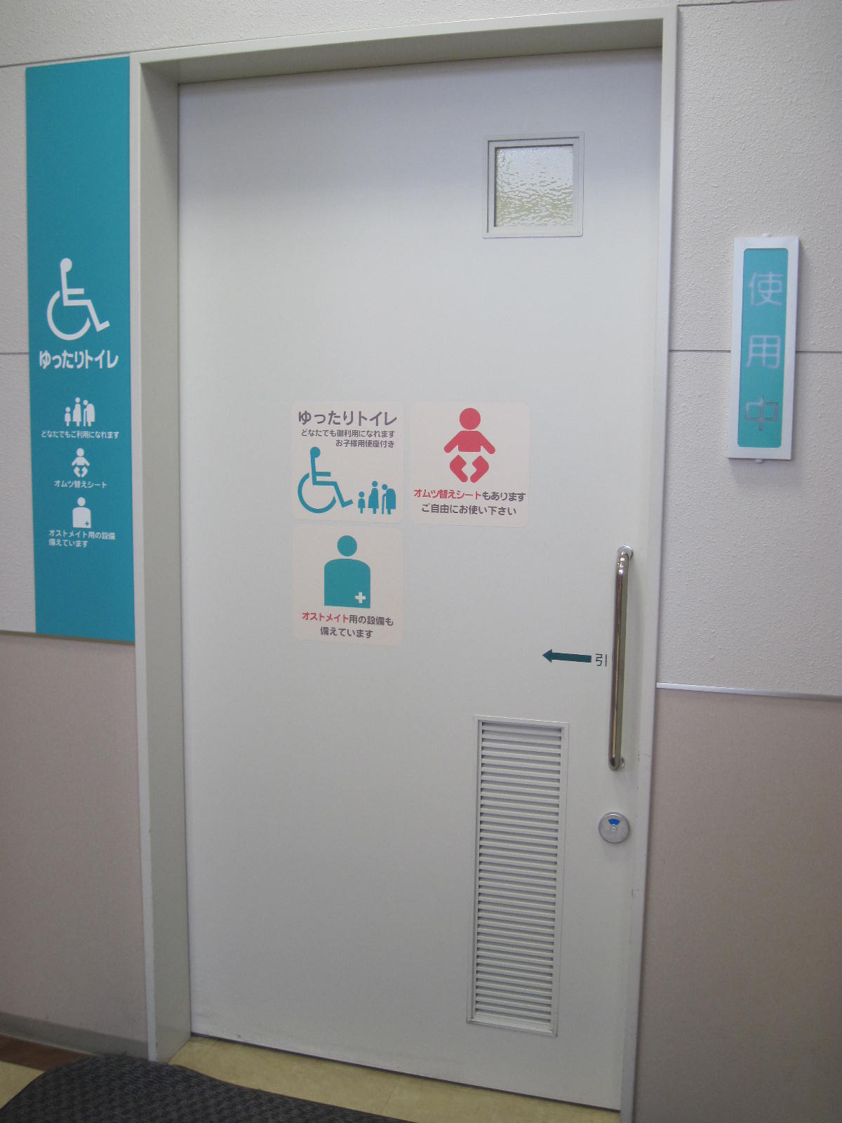 - 男性トイレおよび多目的トイレ内にベビーベッドあり