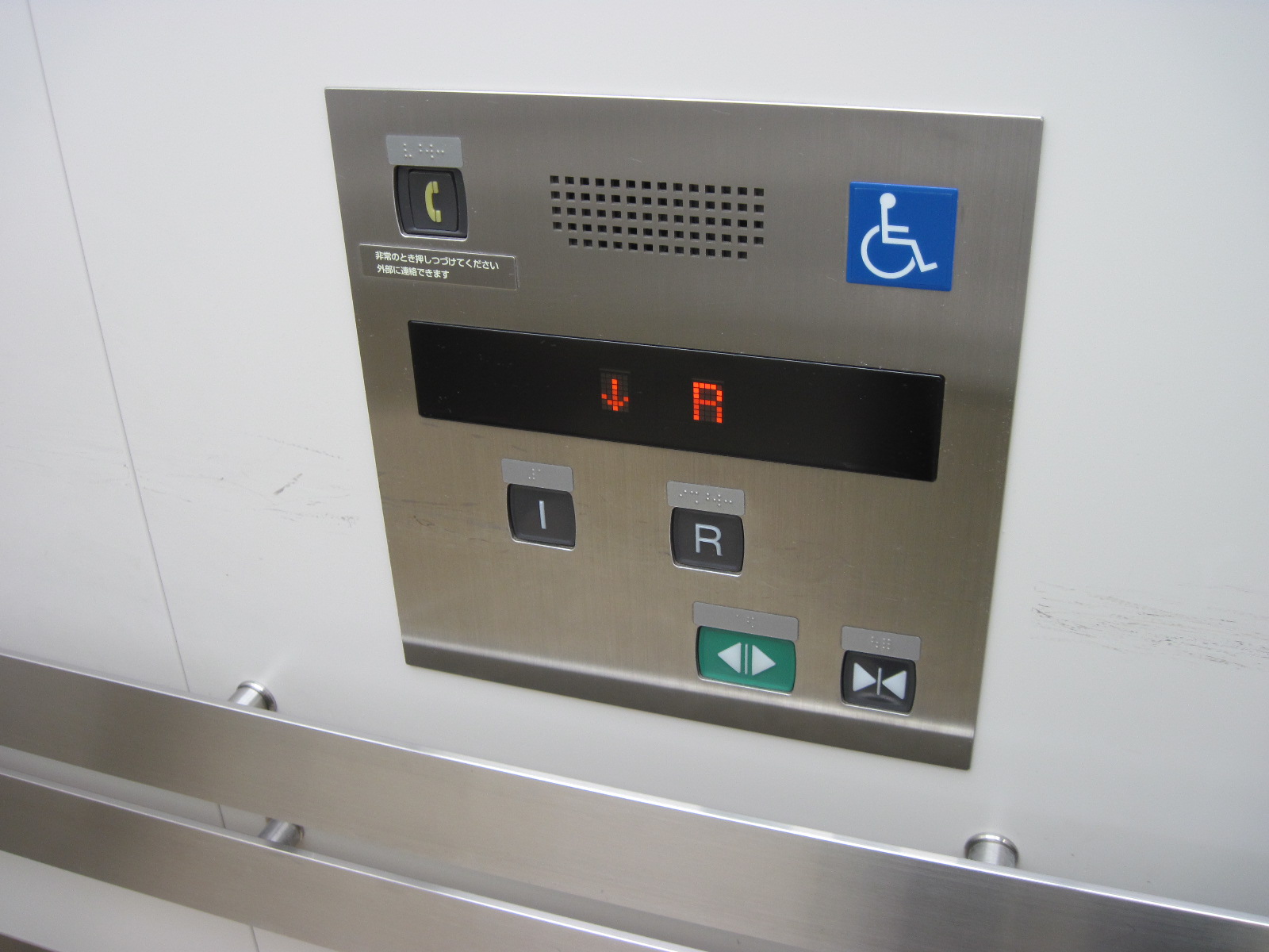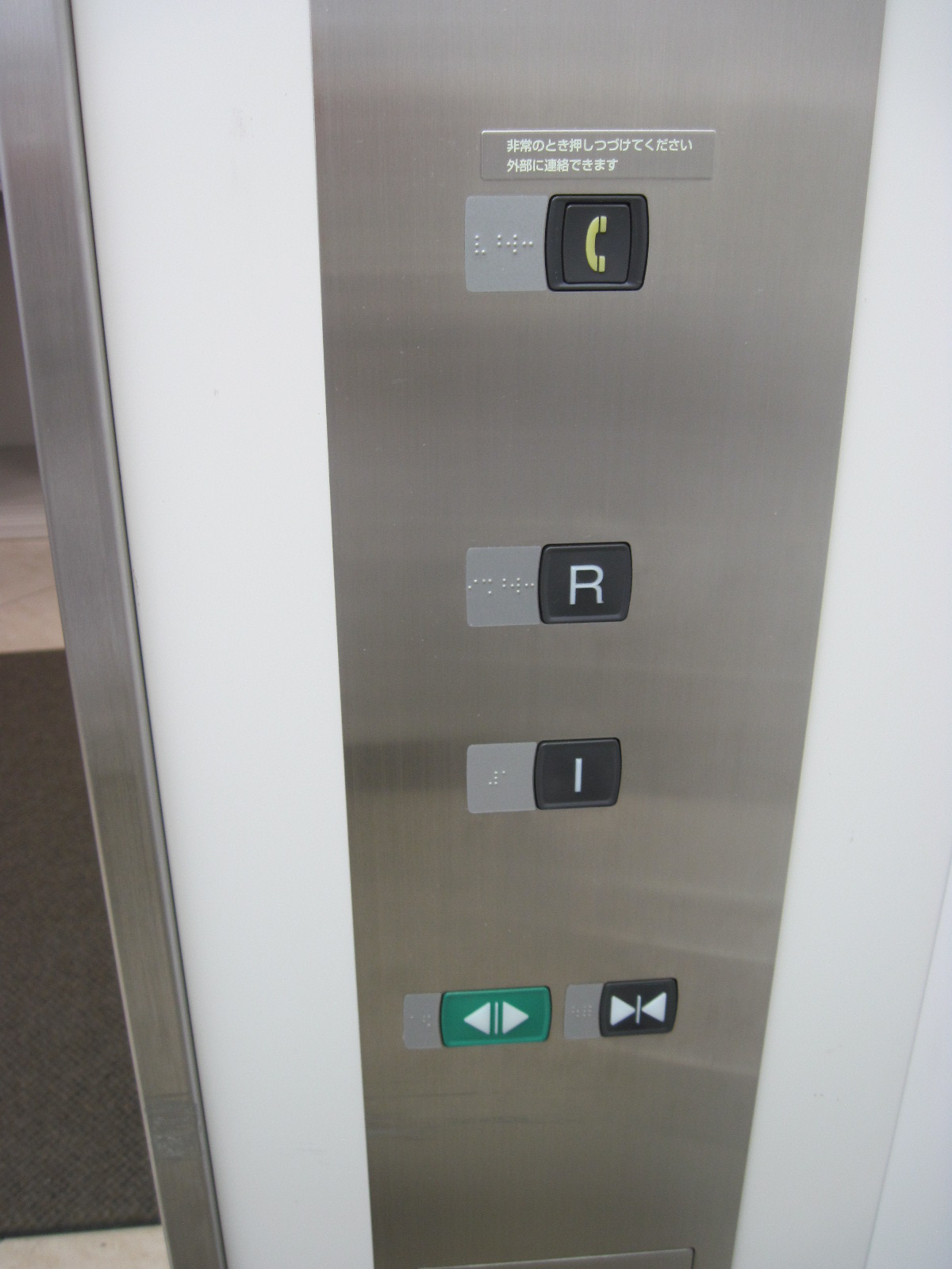 障害者対応エレベーターに点字表示ボタンがある
