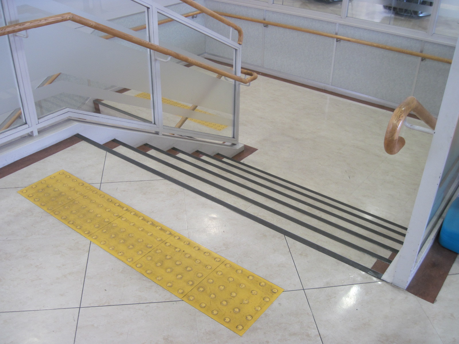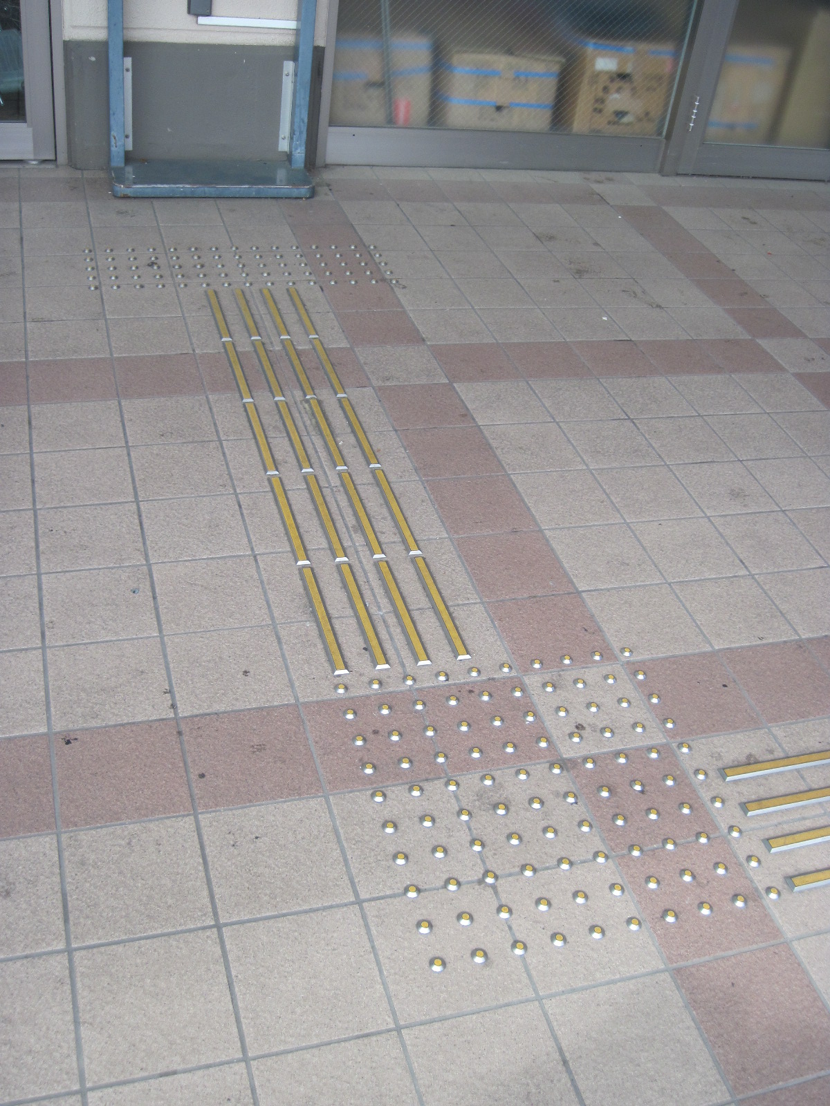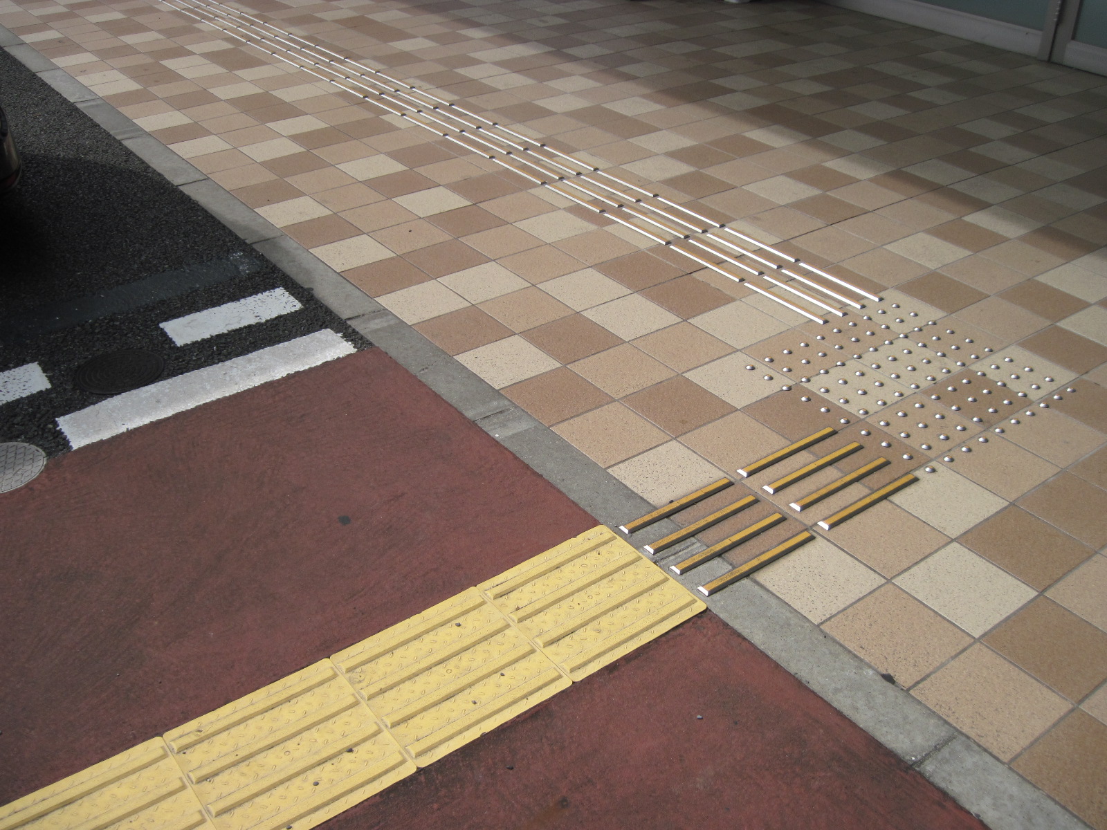 歩道から出入口までに視覚障害者誘導用ブロックがある