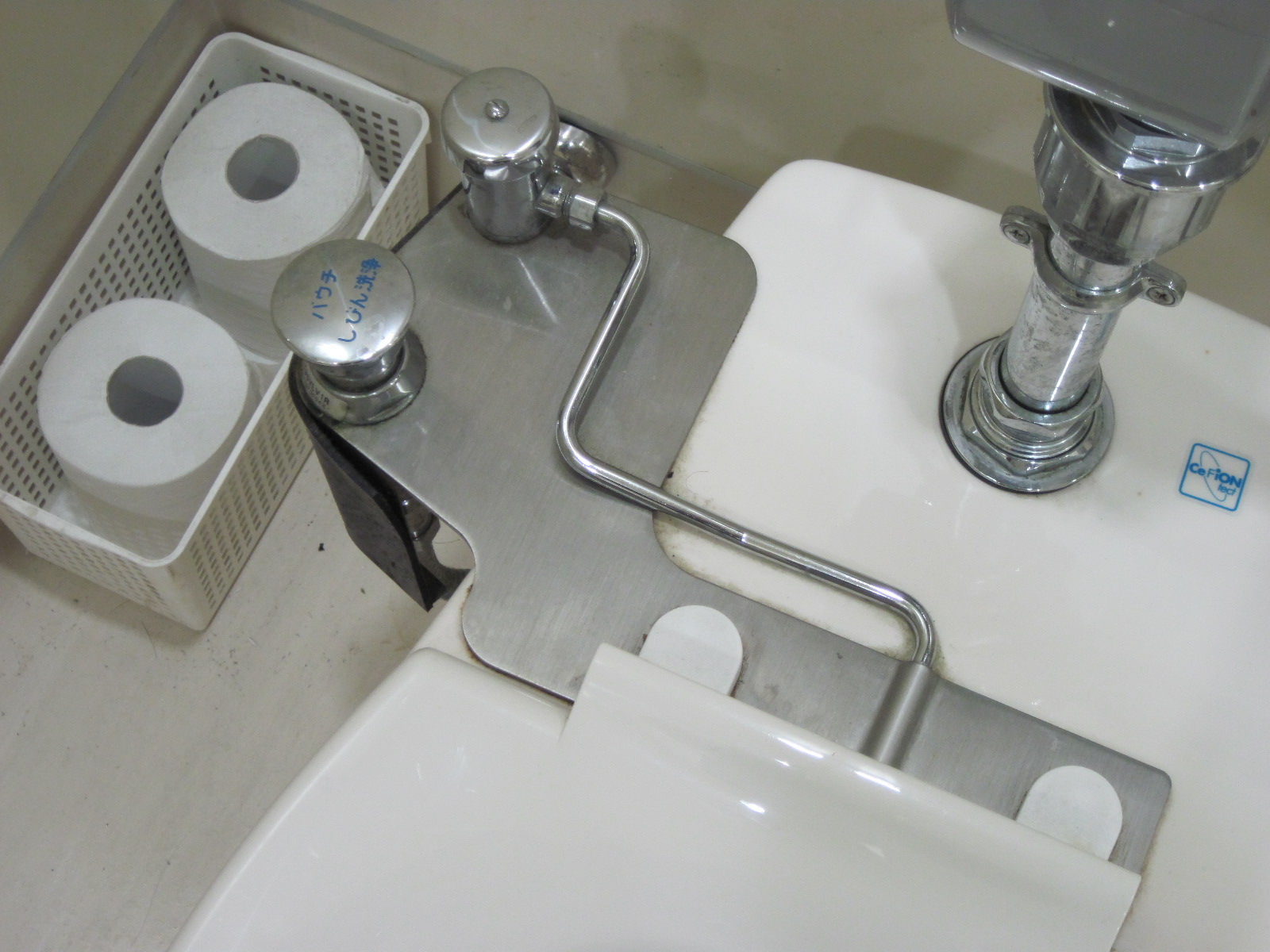 非常ベルが便座から手が届く範囲にある