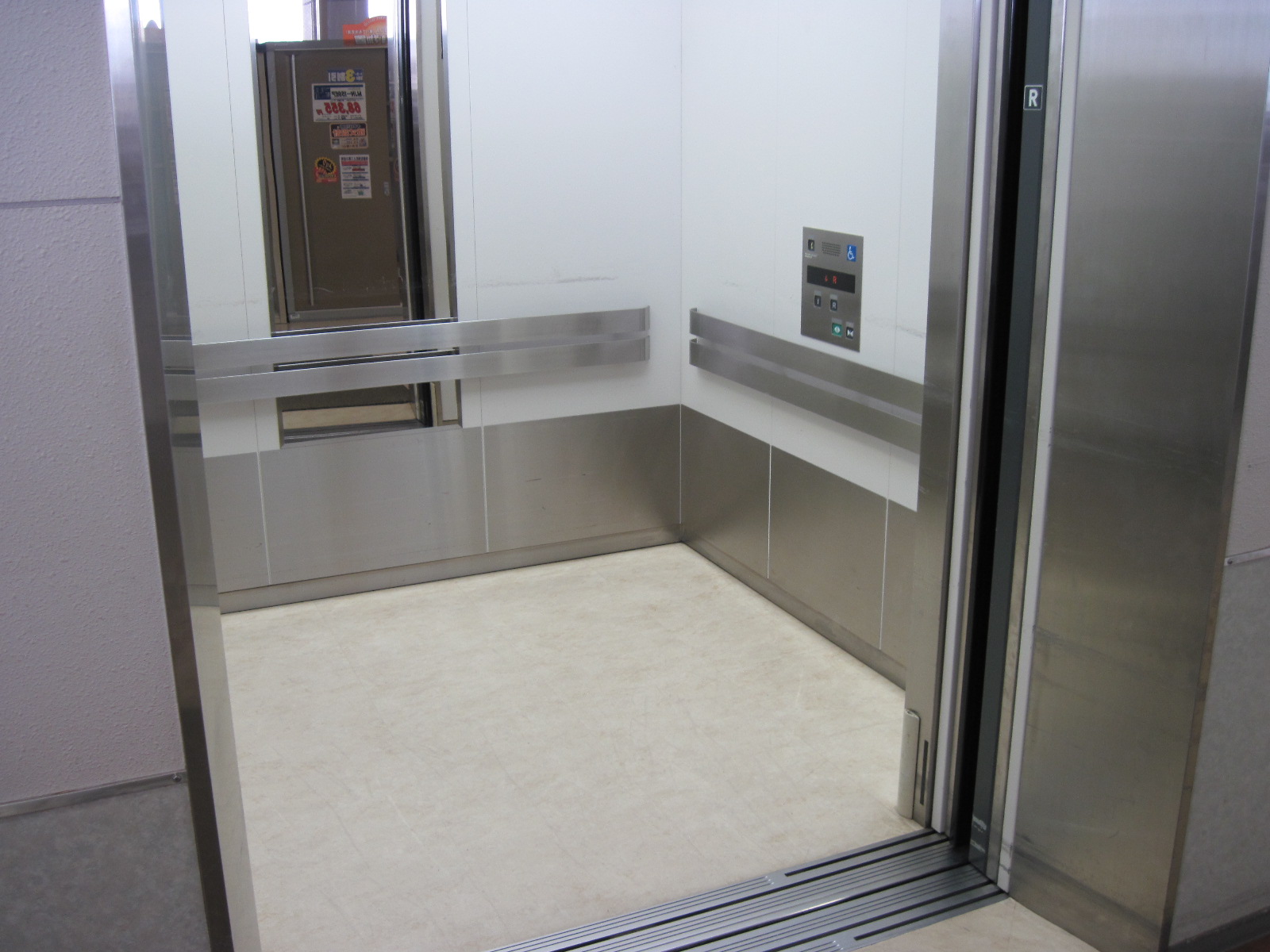 障害者対応エレベーターに手すりがある