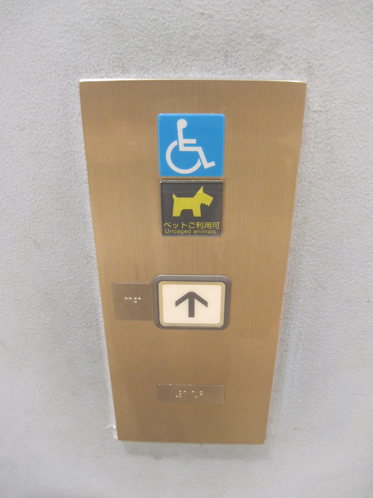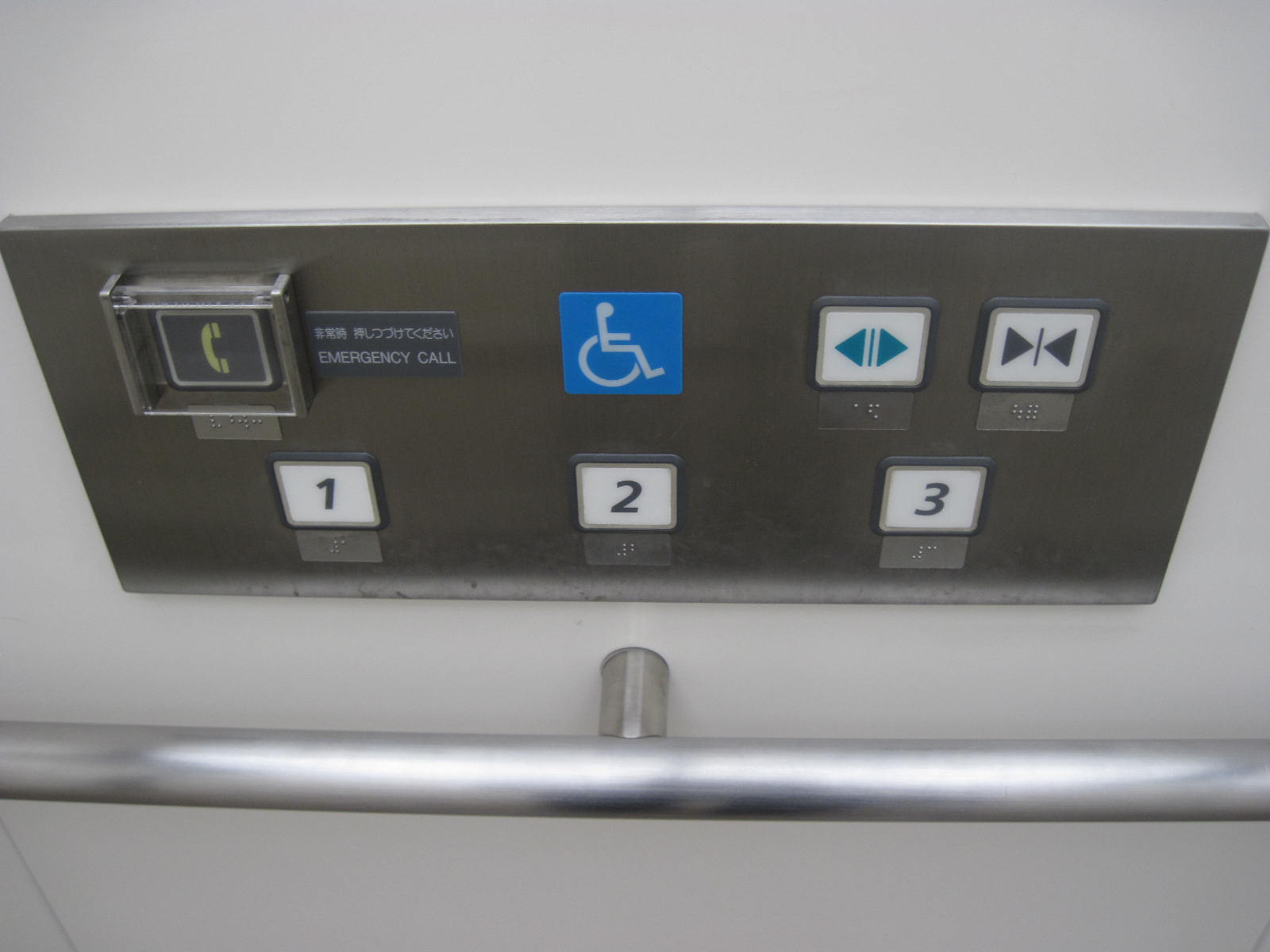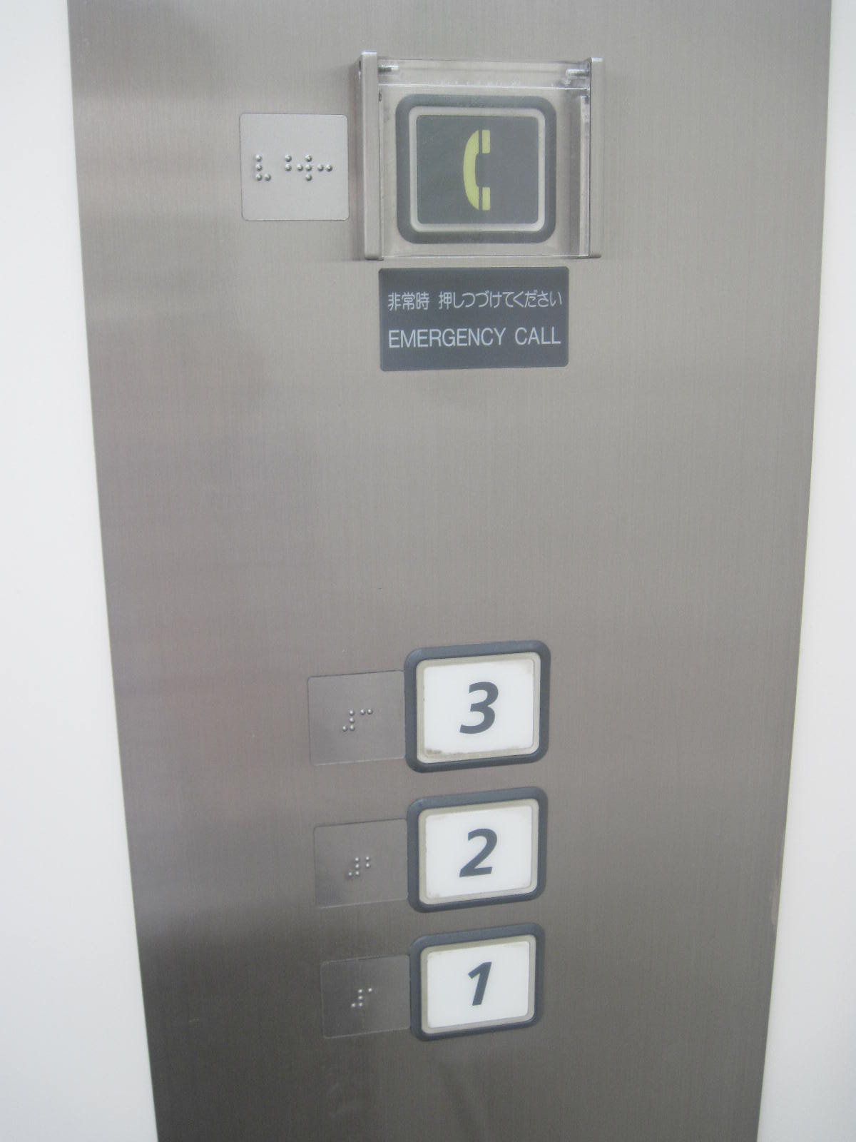 障害者対応エレベーターに点字表示ボタンがある