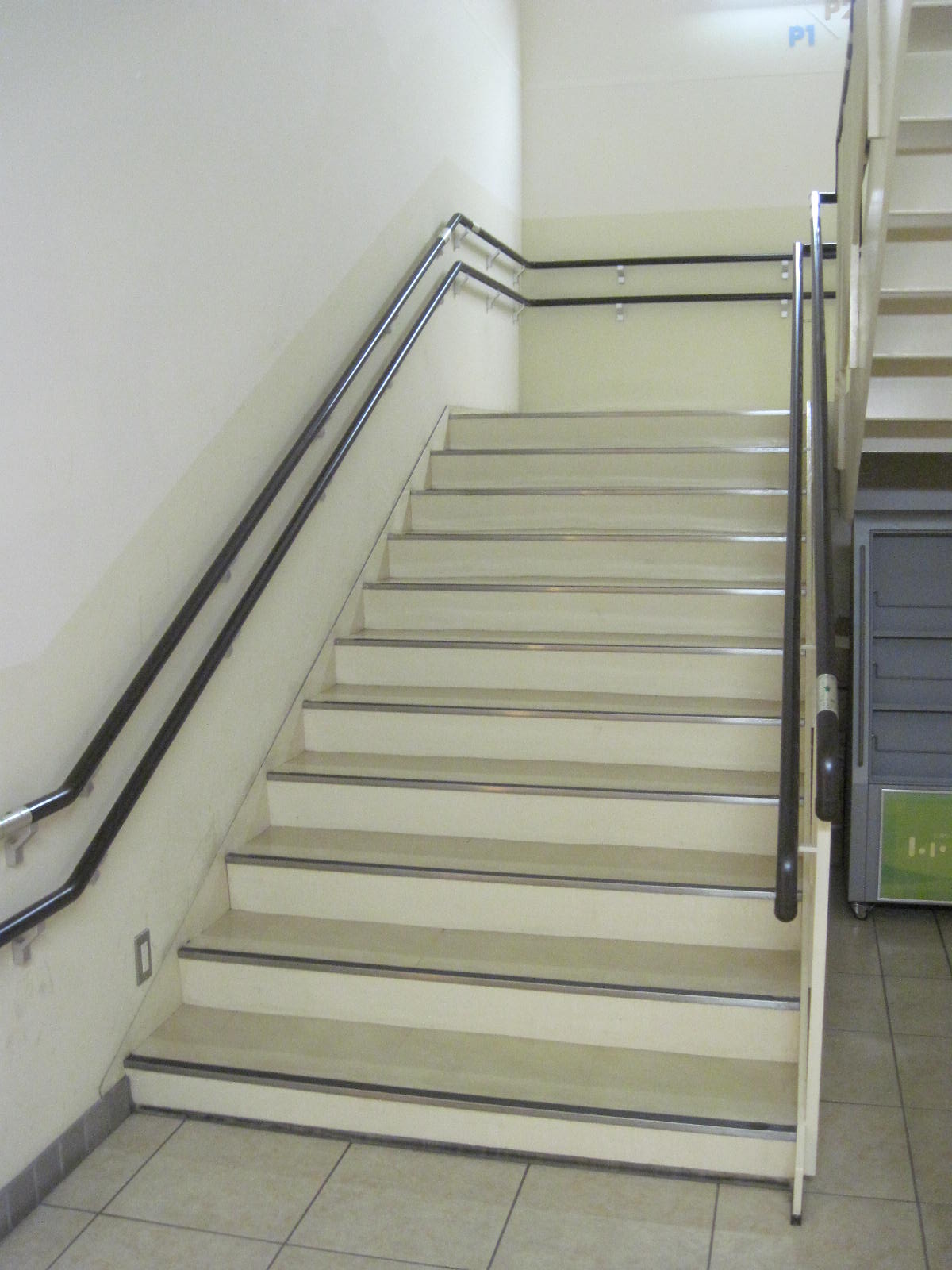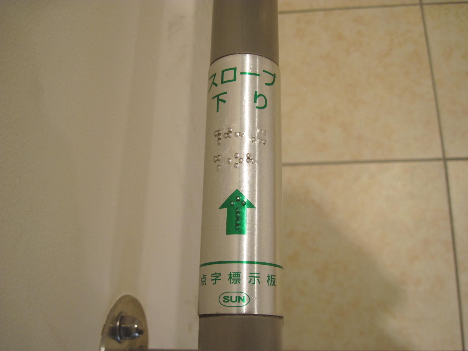 階段の手すりに点字表示がある