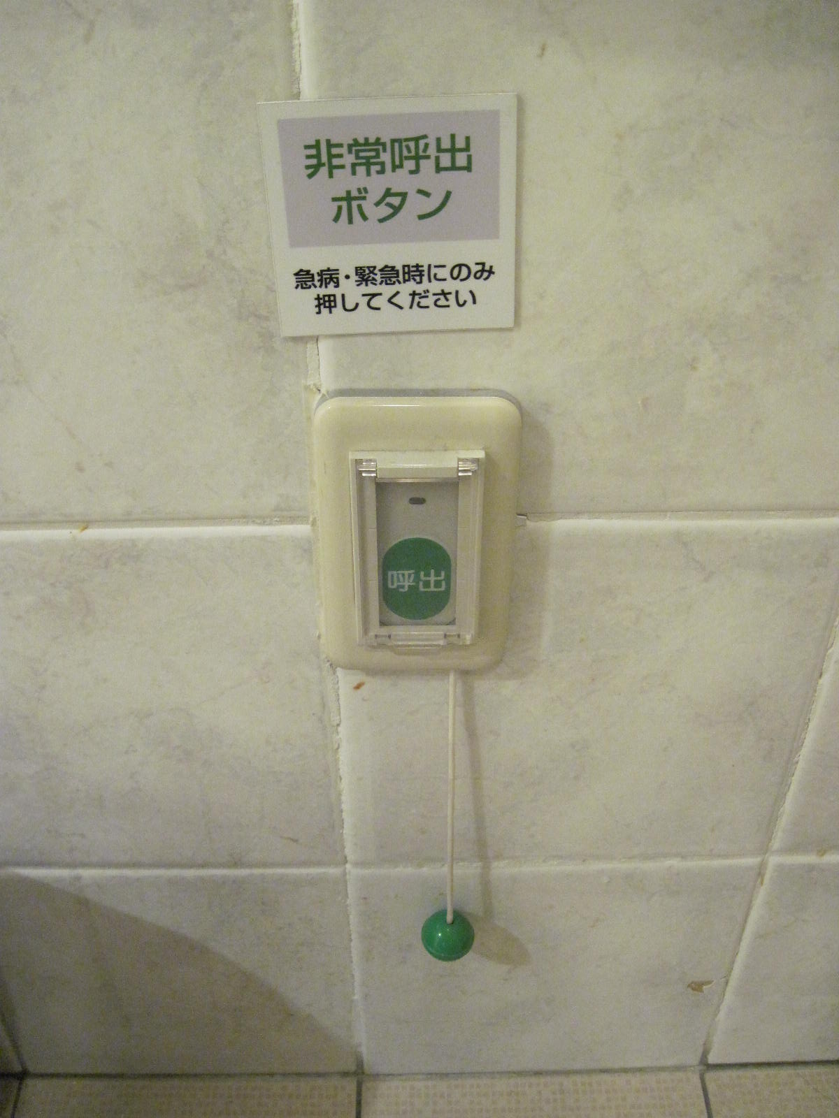 非常ベルが便座から手が届く範囲にある