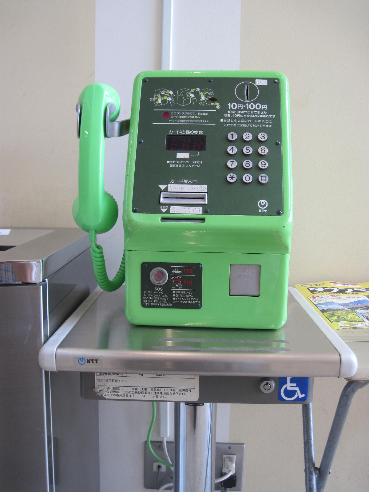- 車いす対応公衆電話がある