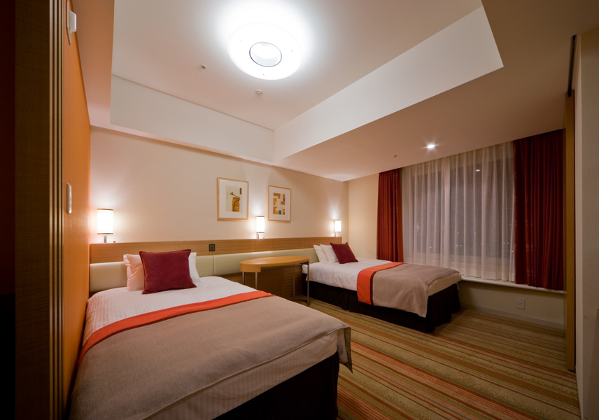 アクセシブルルームのベッドの高さは57cm。チャイムを伝える装置を設置