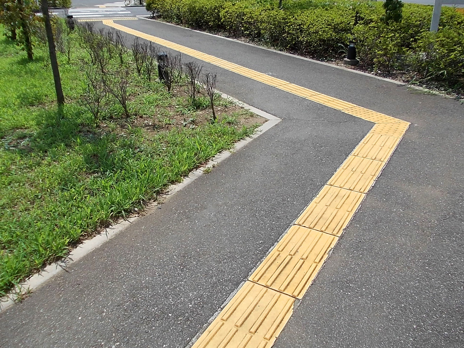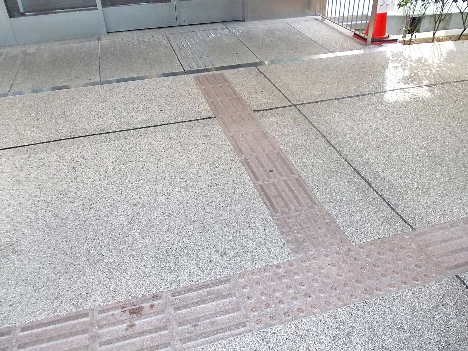 歩道から出入口までに視覚障害者誘導用ブロックがある