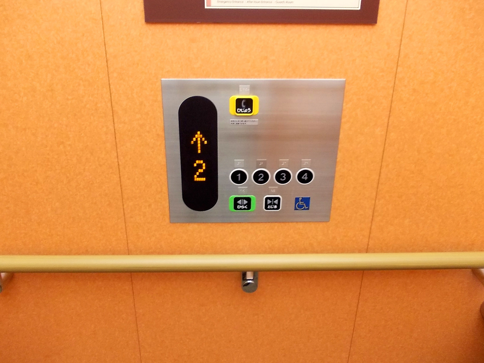 障害者対応エレベーターに手すりがある