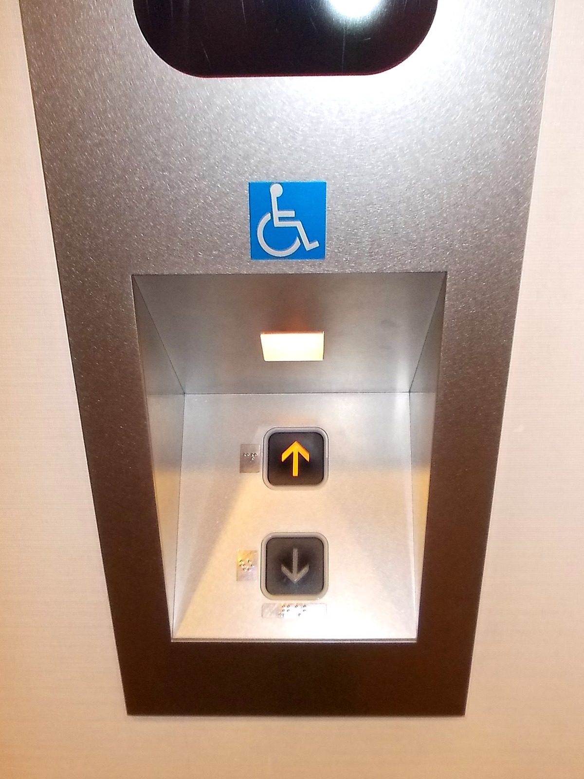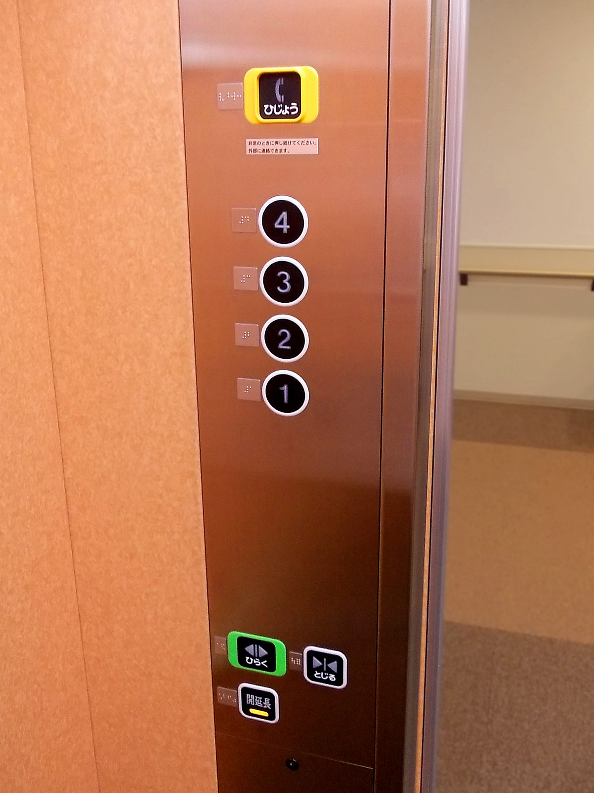障害者対応エレベーターに点字表示ボタンがある