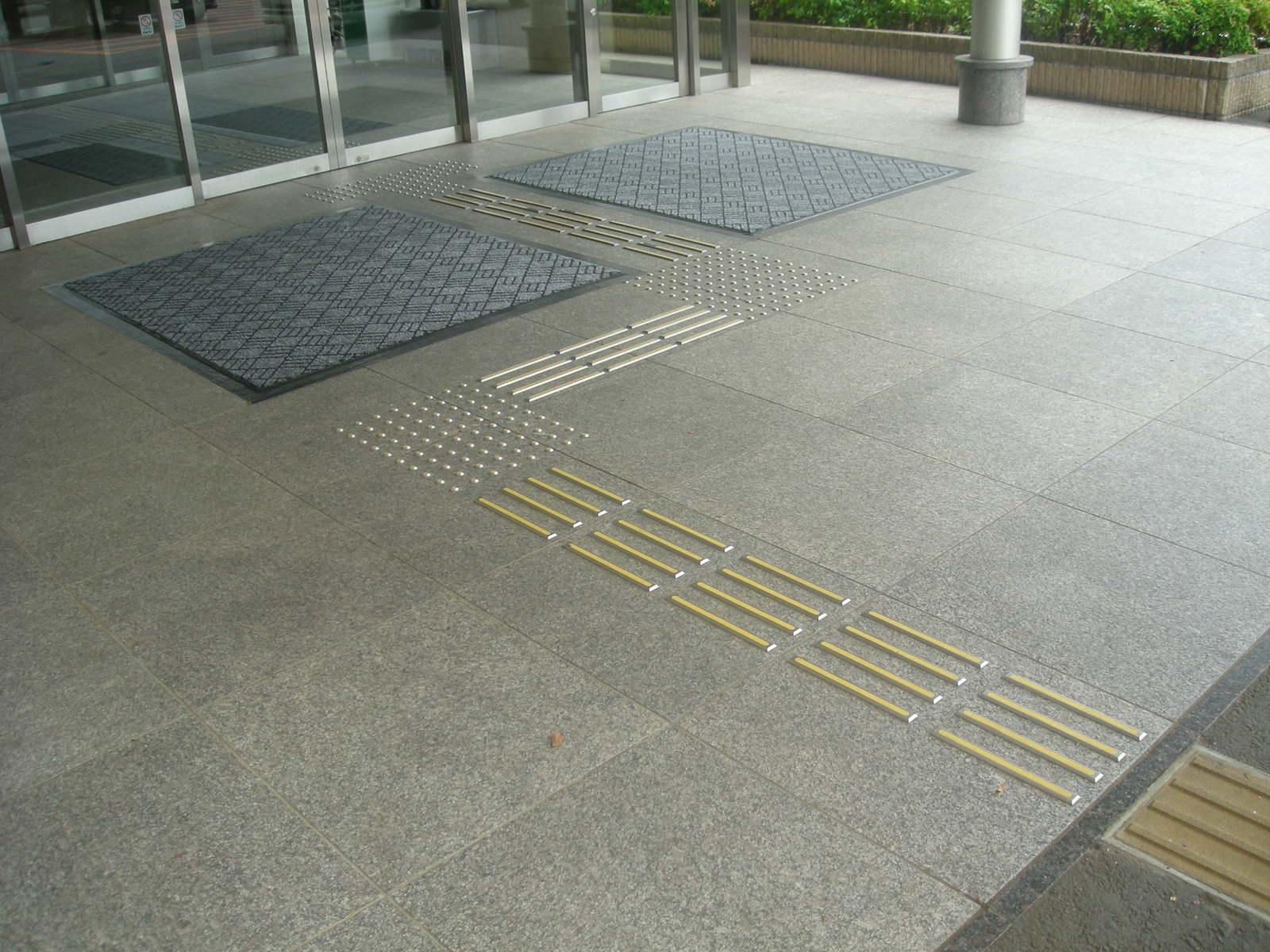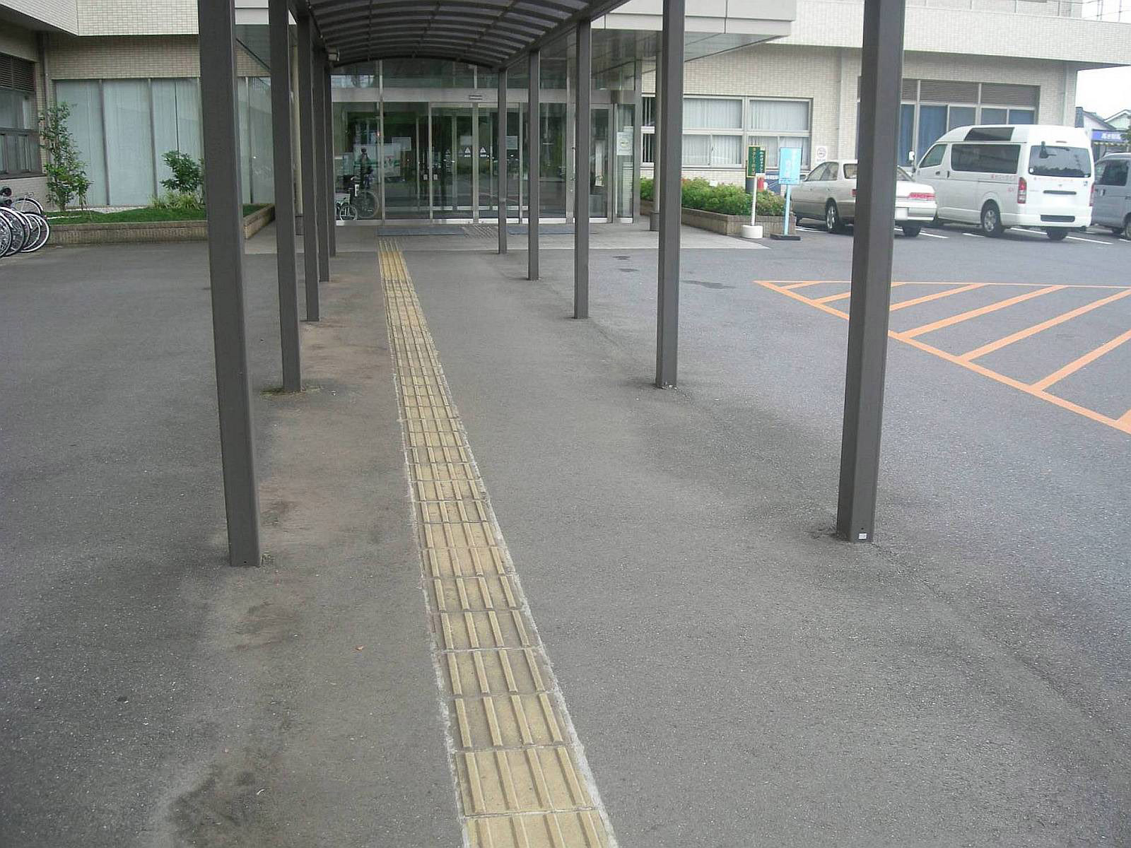 歩道から出入口までに視覚障害者誘導用ブロックがある