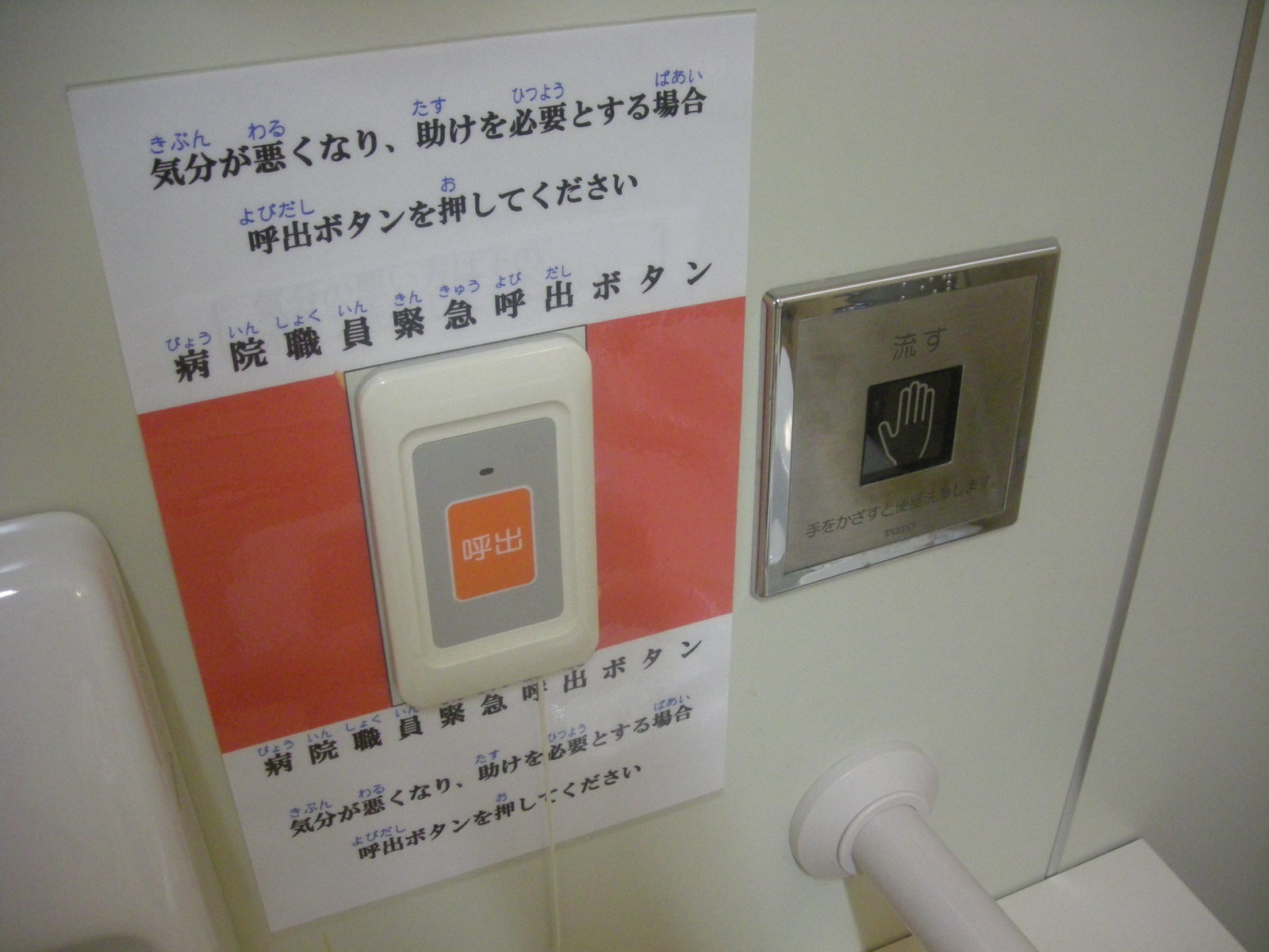トイレがある出入口の幅:90cm以上トイレ内の通路幅:90cm以上トイレ内の段差がない手すり付小便器がある洋式便器(手すり付き)がある洋式便器(右手すり付き)がある男女共用バリアフリートイレがあるオストメイト対応設備がある大人用ベッドがある右手に壁がある右手すりが固定である左手すりが可動である非常ベルがある非常ベルが便座から手が届く範囲にある
