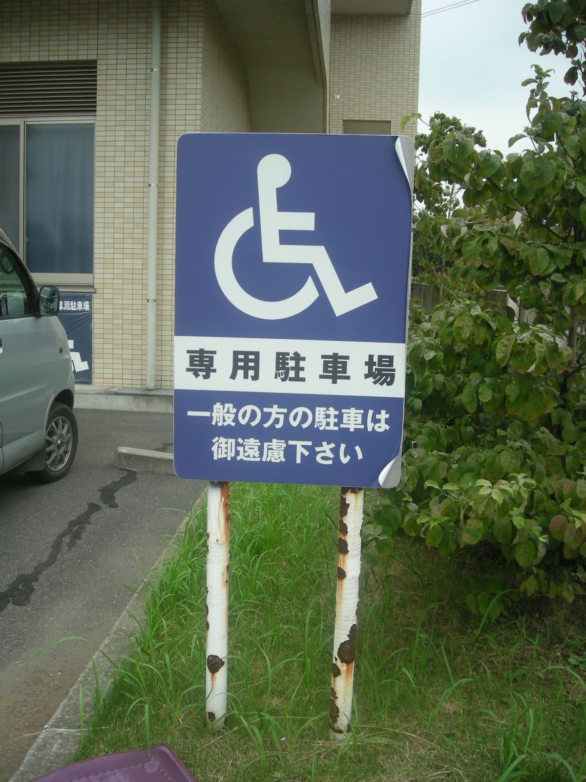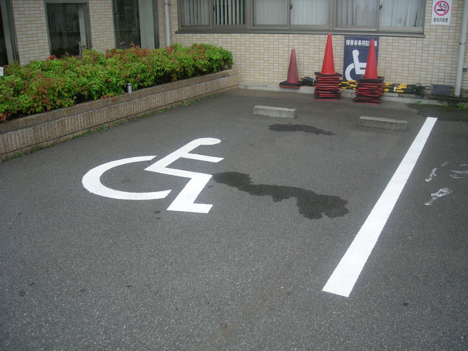 一般駐車場がある障害者等用駐車スペースがある障害者等用駐車スペースの案内表示がある